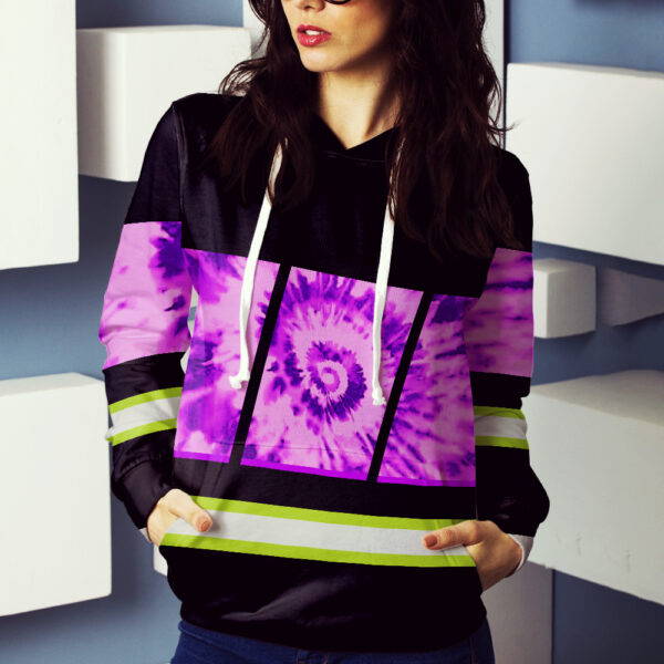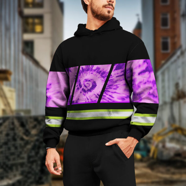 Hi Vis Hoodie Reflective Tapes Violet Tie Dye Custom Name Safety Workwear For Workers, Runners, Cyclists