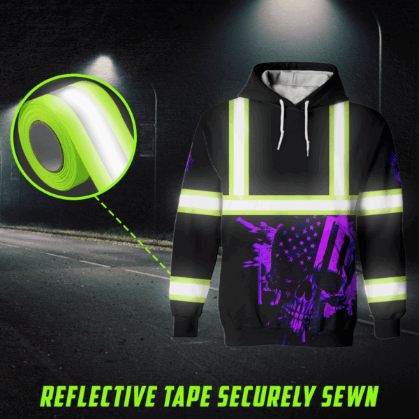 Hi Vis Hoodie Reflective Violet Neon USA Skull Custom Name Safety Workwear For Workers, Runners, Cyclists, Patriotic quantity