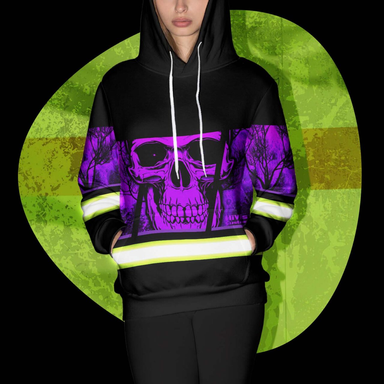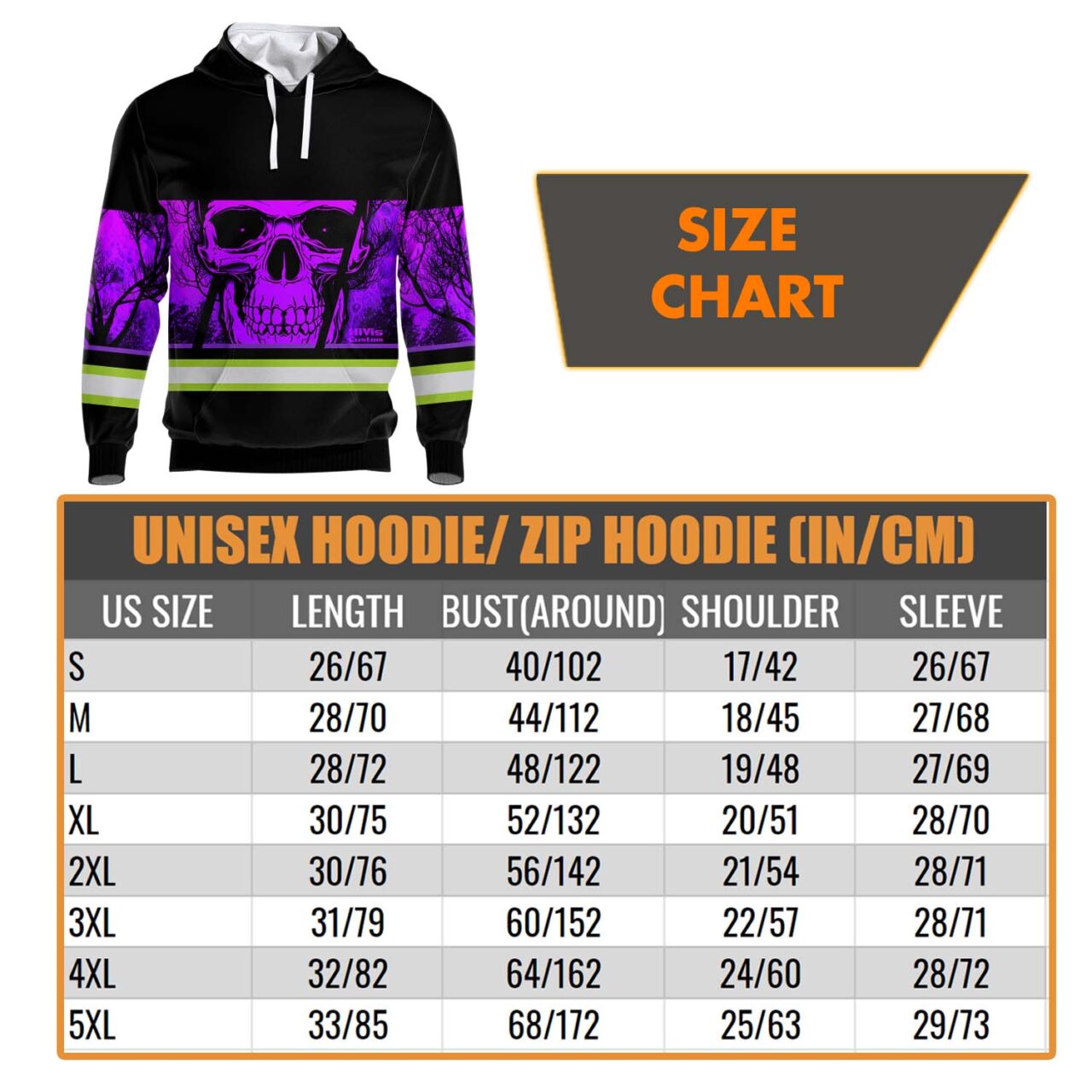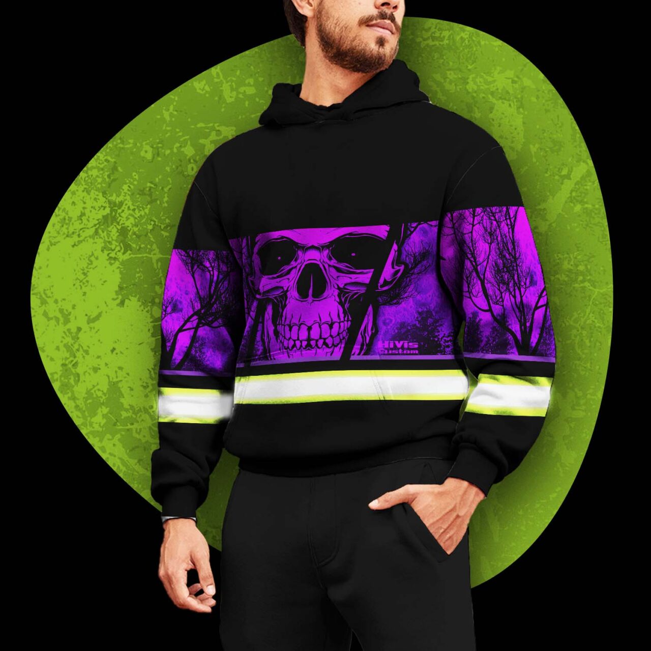 Hi Vis Hoodie Reflective Violet Skull USA Flag Custom Name Safety Workwear For Worker, Operator, Trucker