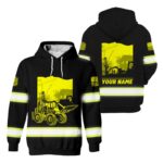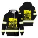 Hi Vis Hoodie Reflective Yellow Neon Loaders Construction USA Flag Custom Name Safety Workwear For Workers, Operator, Runners, Cyclists