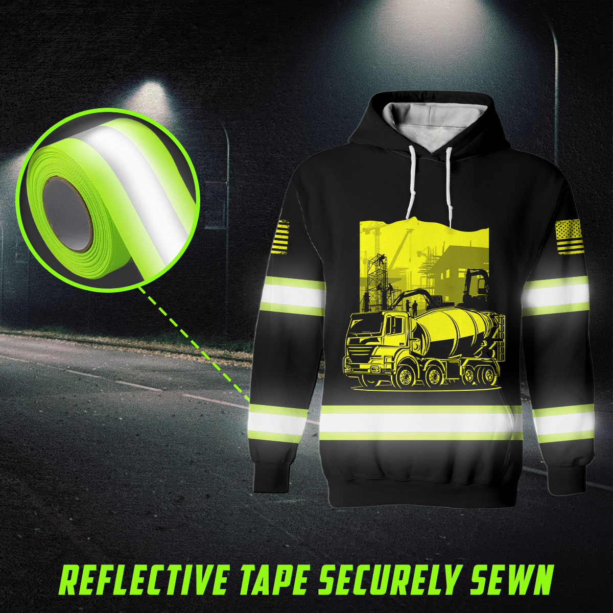 Hi Vis Hoodie Reflective Yellow Neon Concrete Mixer Construction USA Flag
