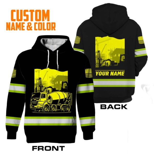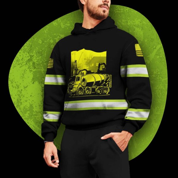Hi Vis Hoodie Reflective Yellow Neon Concrete Mixer Construction USA Flag