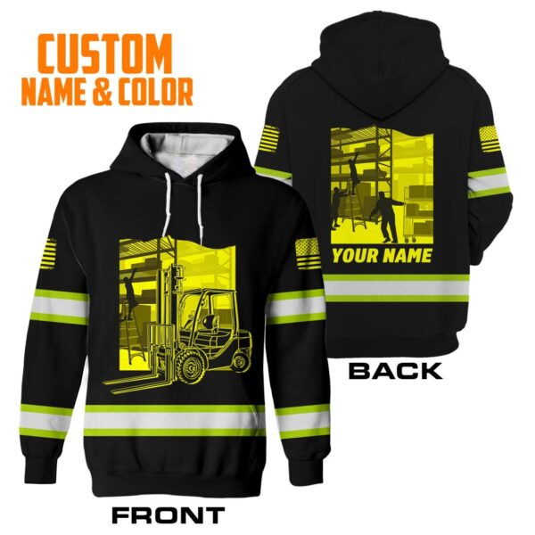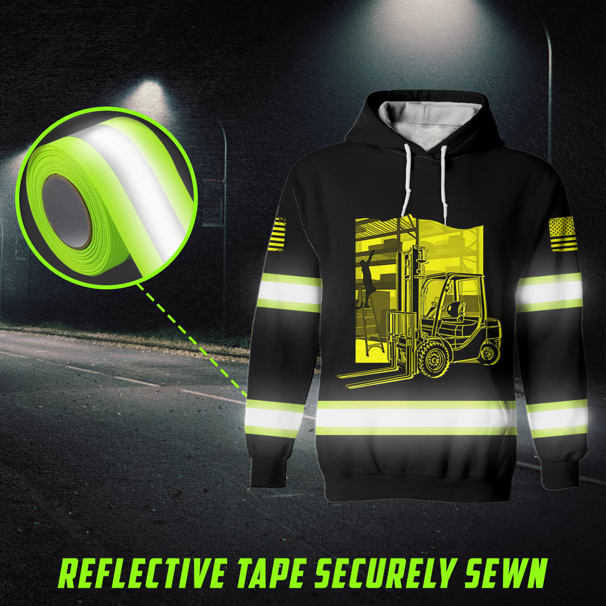 Hi Vis Hoodie Reflective Yellow Neon Forklifts Construction USA Flag Custom Name Safety Workwear For Workers, Trucker, Runners, Cyclists