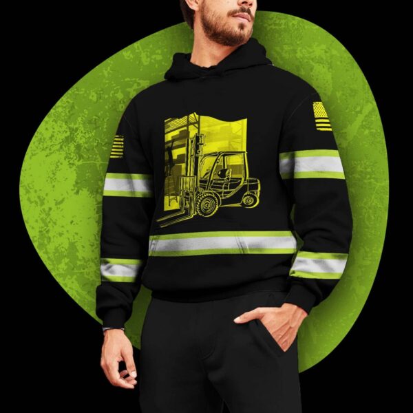 Hi Vis Hoodie Reflective Yellow Neon Forklifts Construction USA Flag Custom Name Safety Workwear For Workers, Trucker, Runners, Cyclists quantity