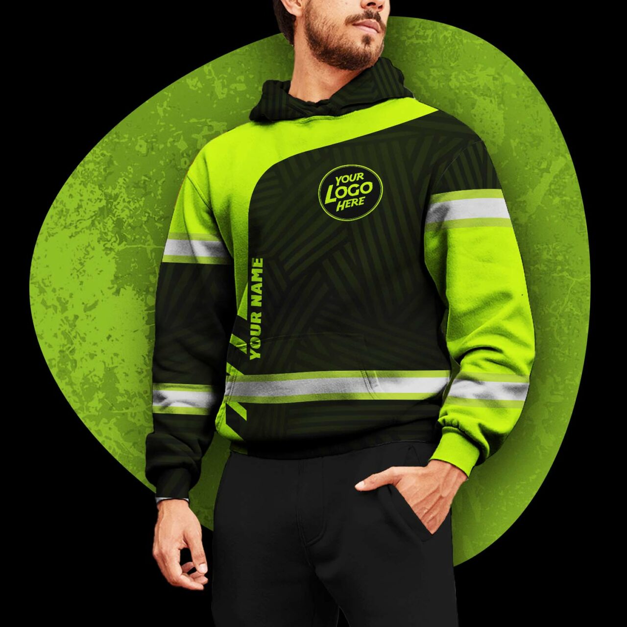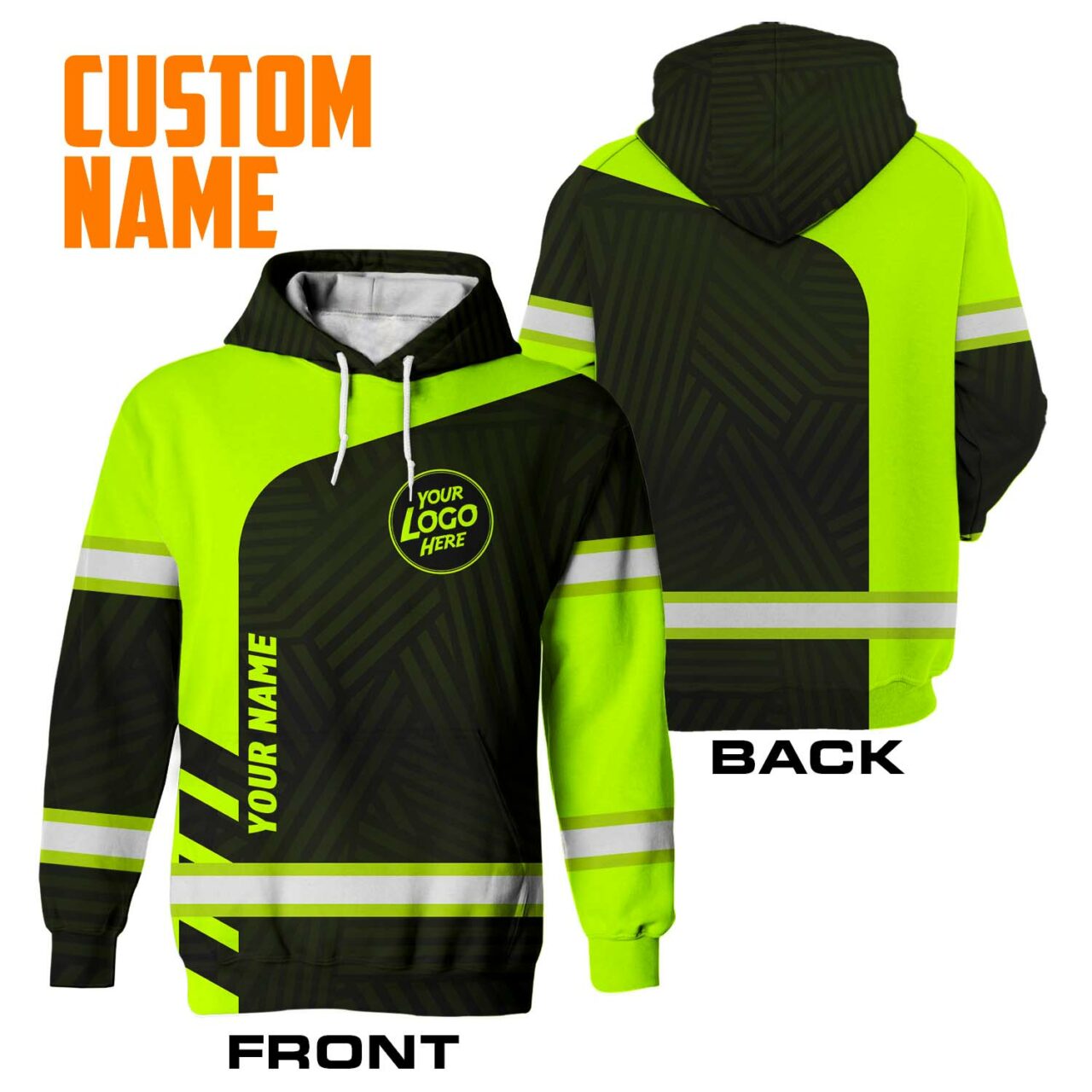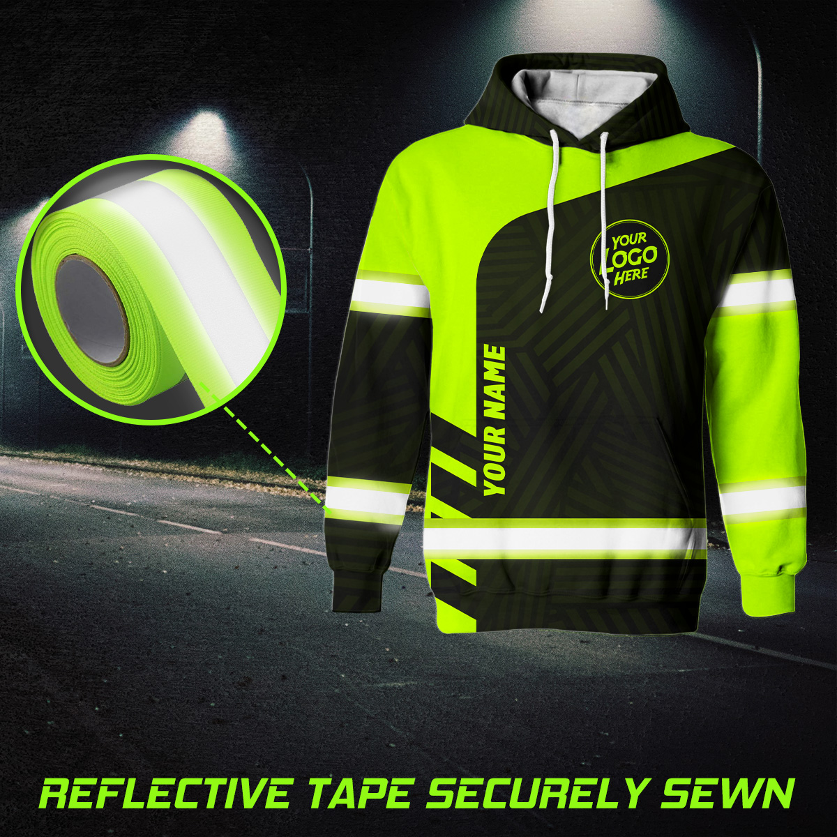 Hi Vis Reflective Green And Black Custom Name Hoodie Safety Workwear