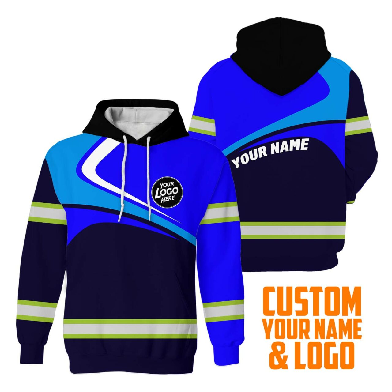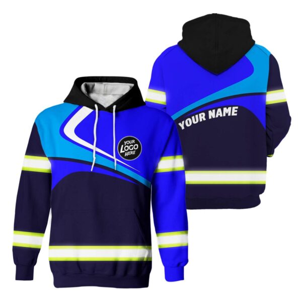 Hi Vis Reflective Blue Camo Custom Name Hoodie Safety Workwear