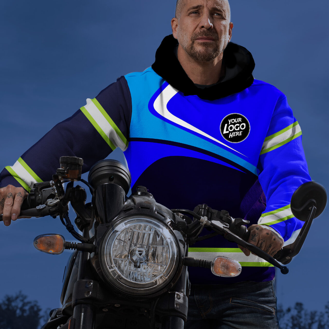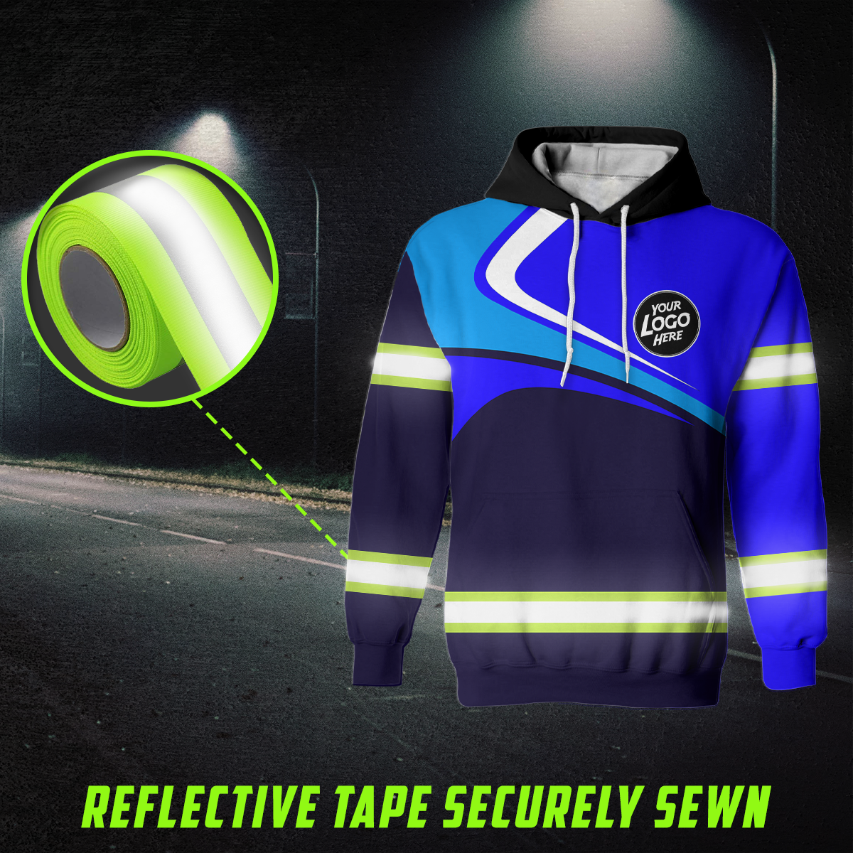 • Hi Vis Hoodie Uniform Reflective Blue Neon