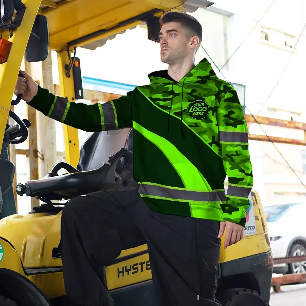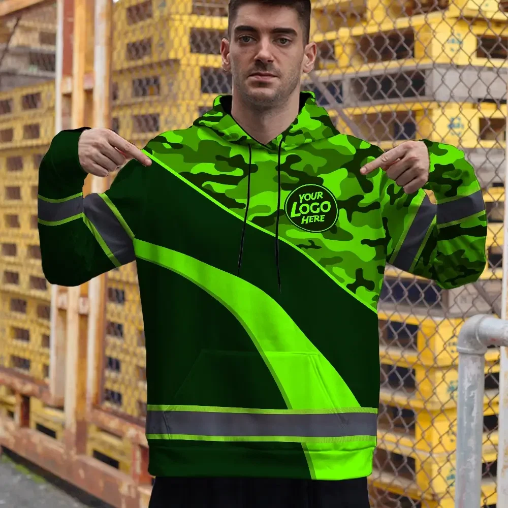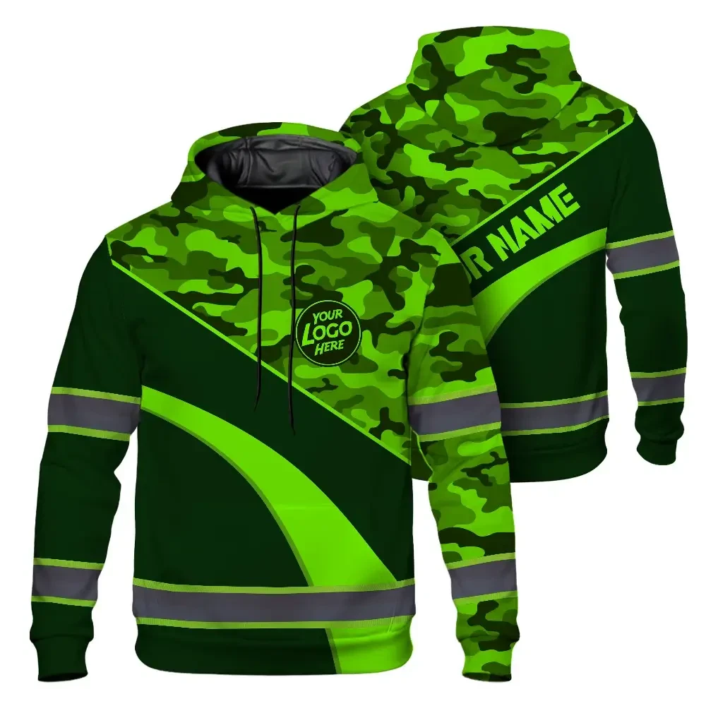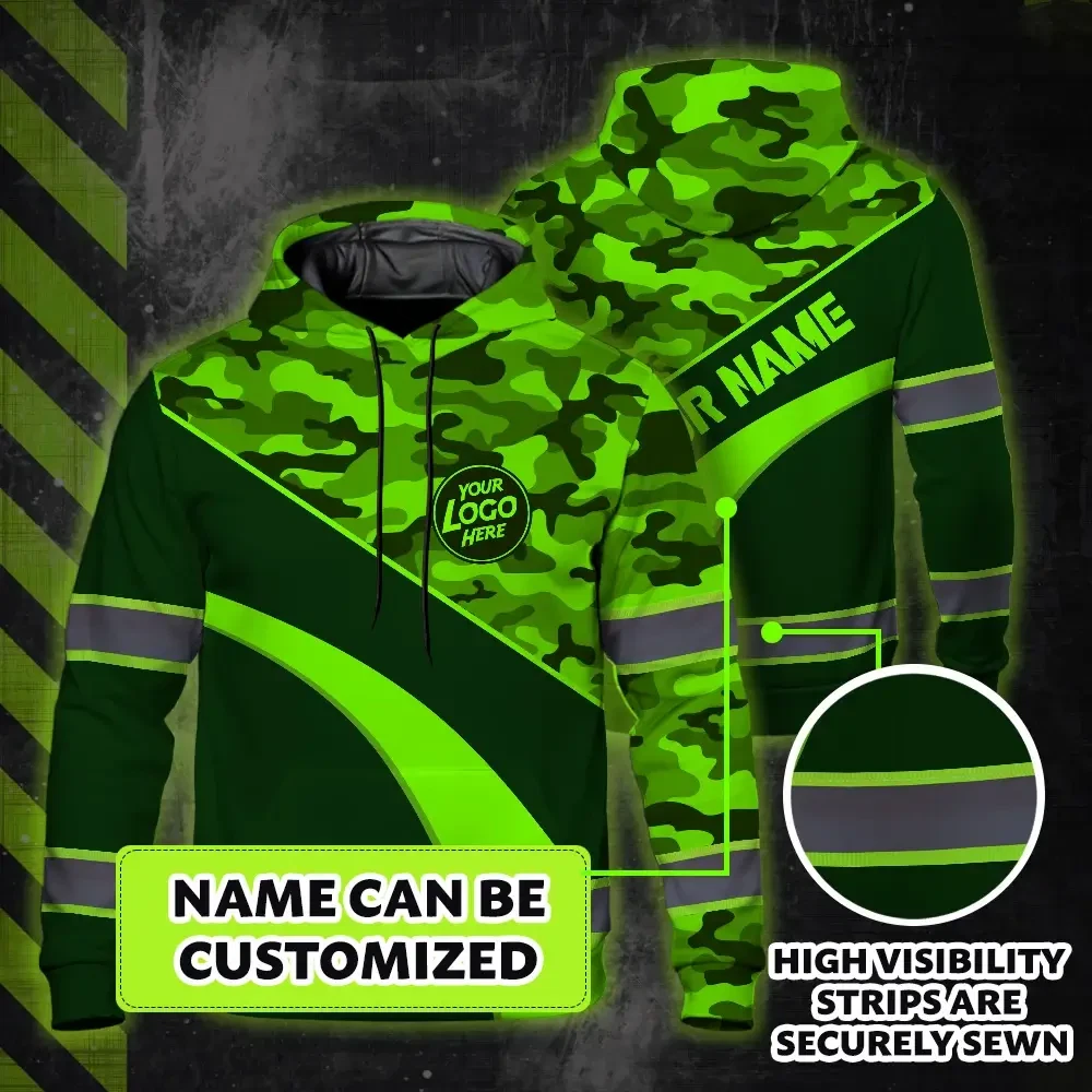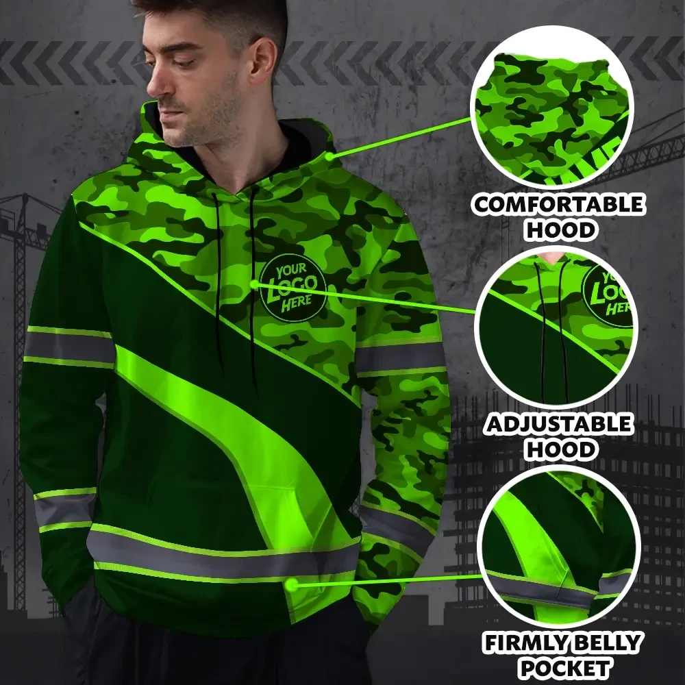 Hi Vis Hoodie Uniform Reflective Green Neon 3 Custom Name And Logo Safety Workwear For Company, Group, Team