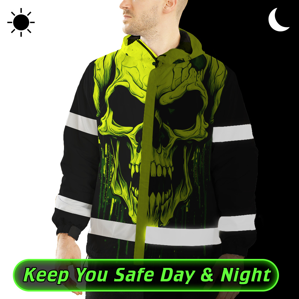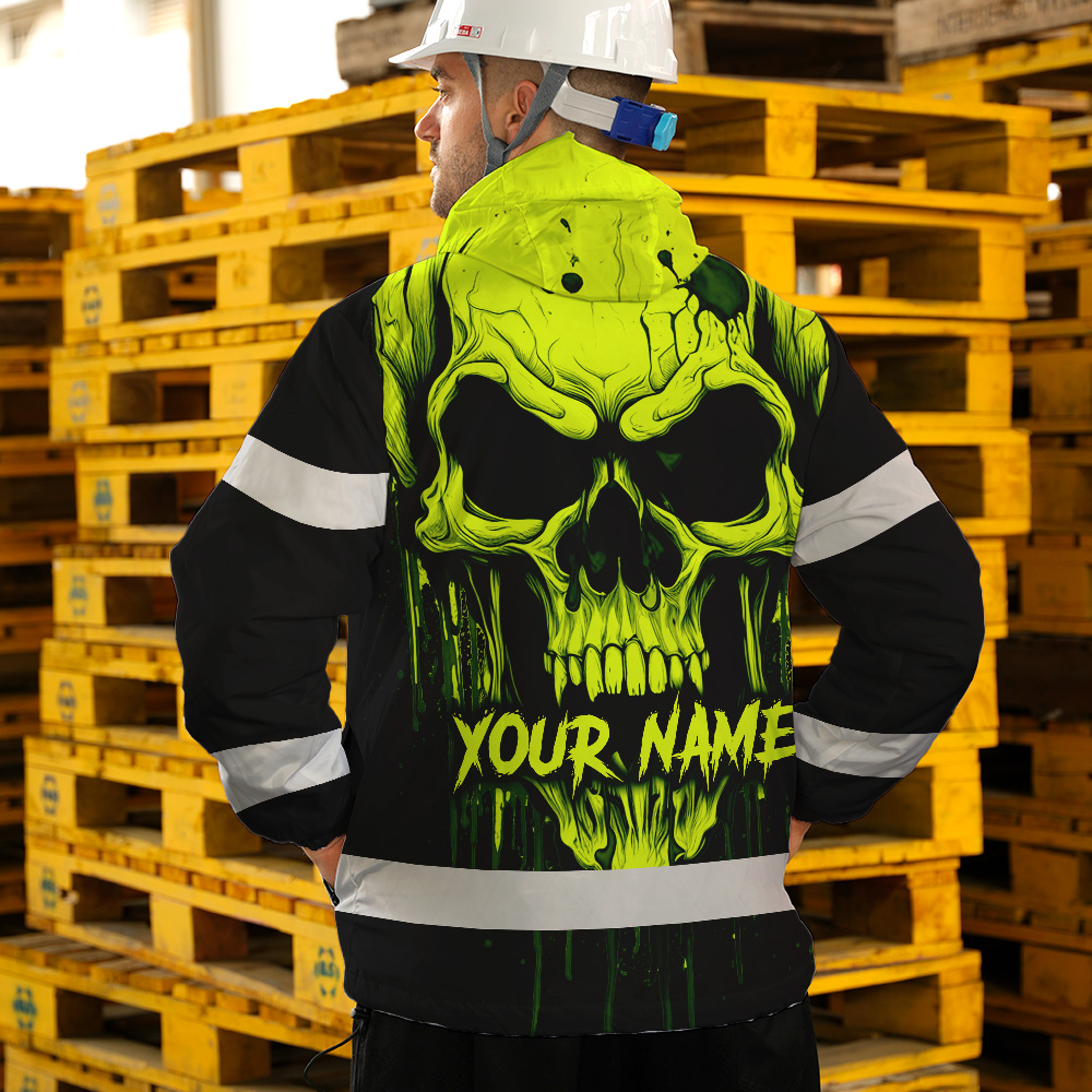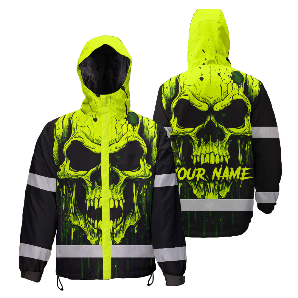 Hi Vis Jacket Reflective Lime Neon Skull Custom Name Safety Workwear
