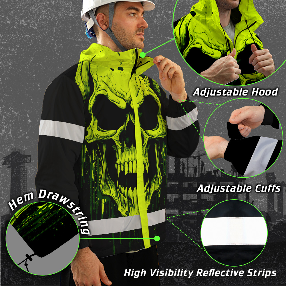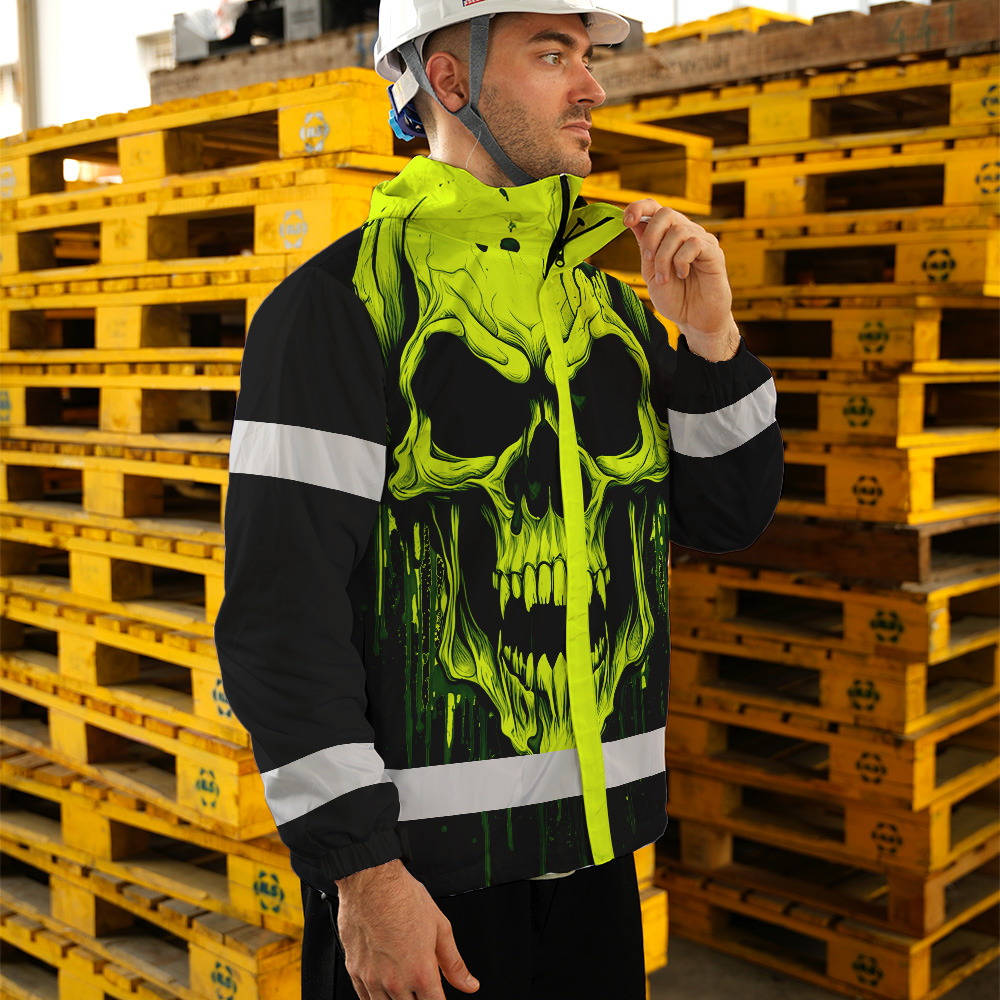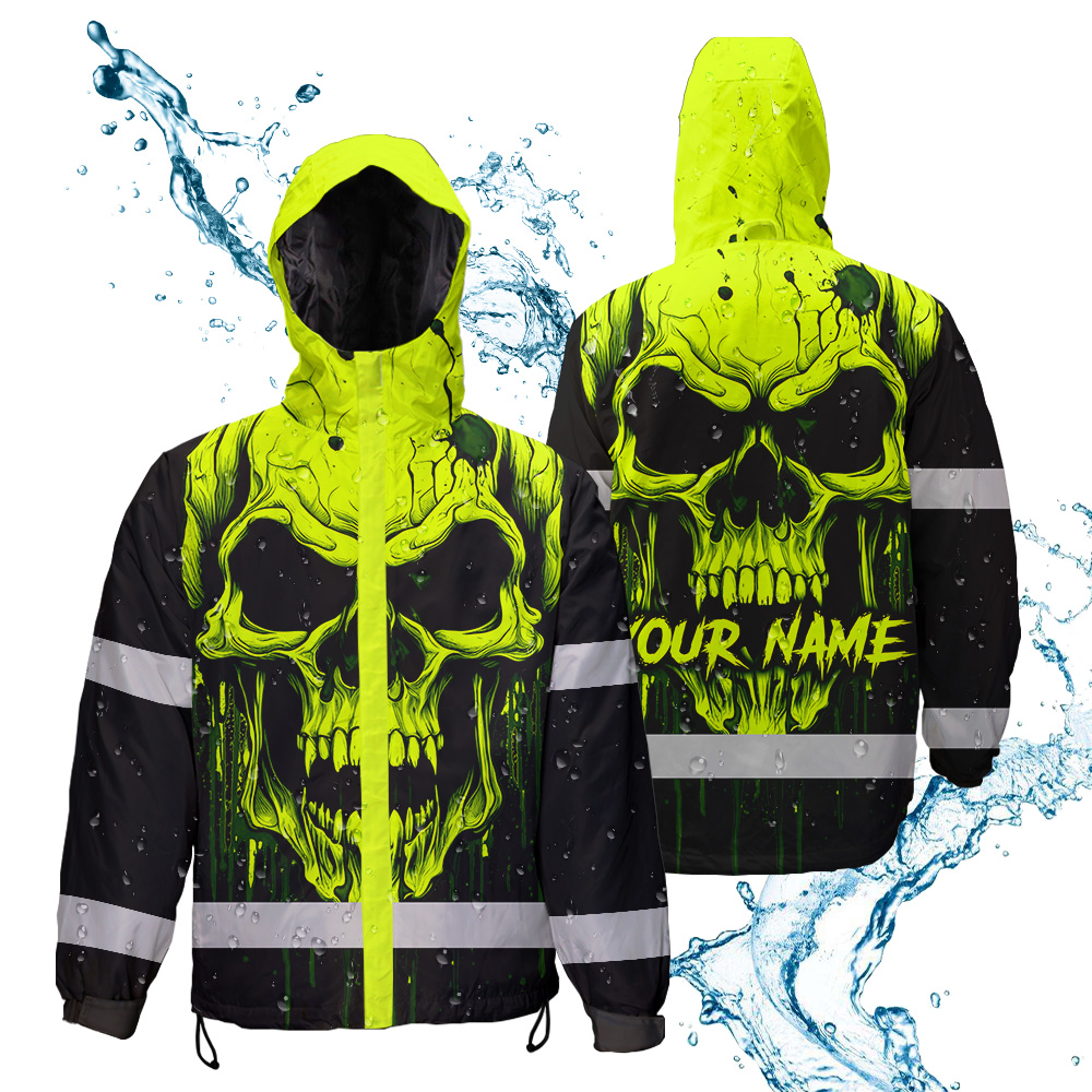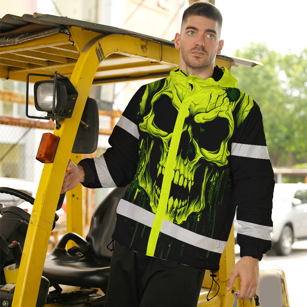 Hi Vis Jacket Reflective Lime Neon Skull Custom Name Safety Workwear
