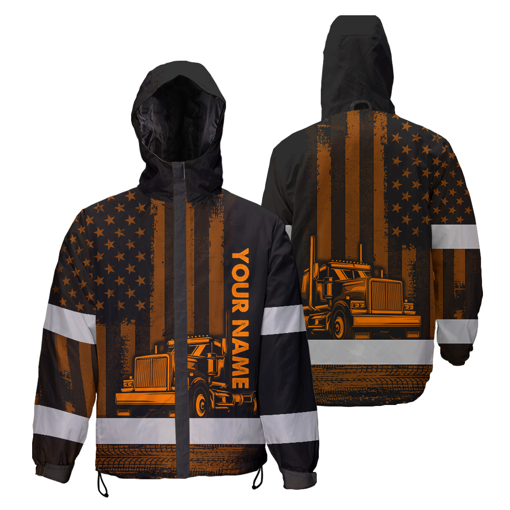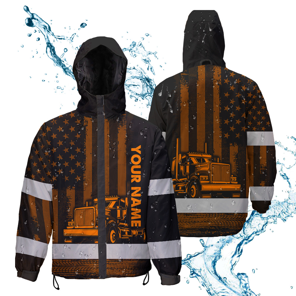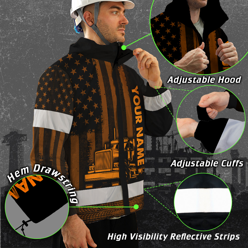 Hi Vis Jacket Waterproof And Windproof JOB Reflective Orange Neon Semi Truck Driver Custom Name