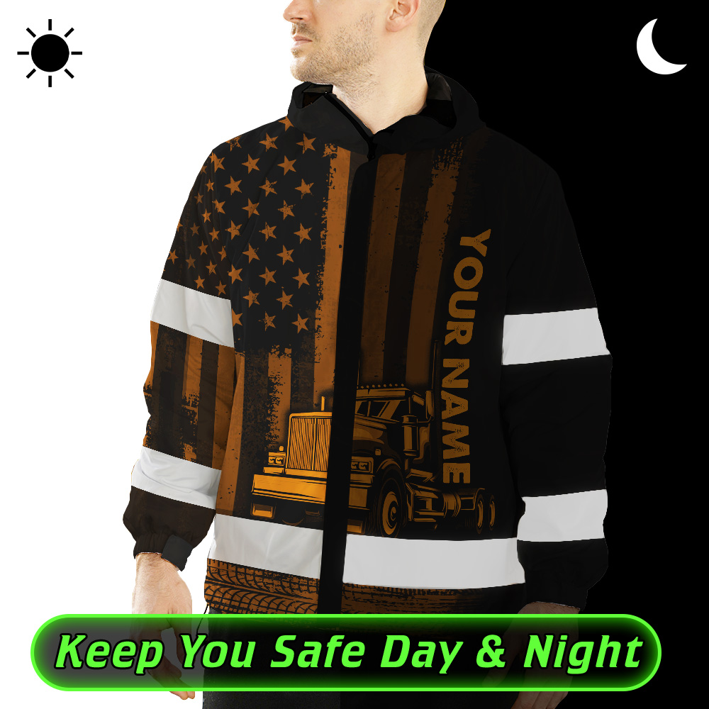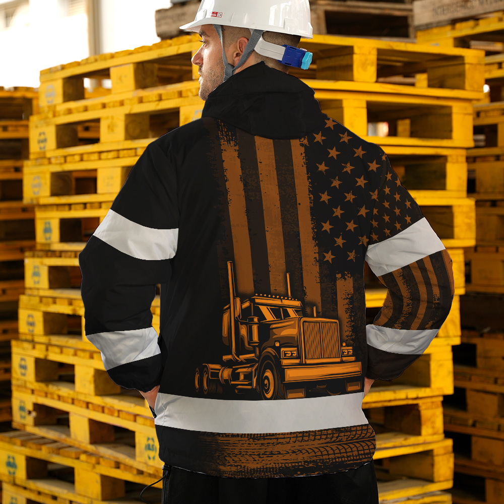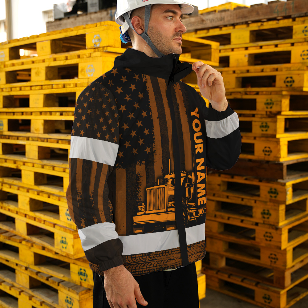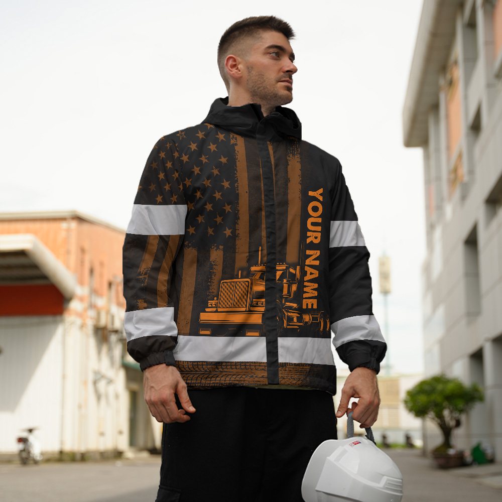Hi Vis Jacket Waterproof And Windproof JOB Reflective Orange Neon Semi Truck Driver Custom Name