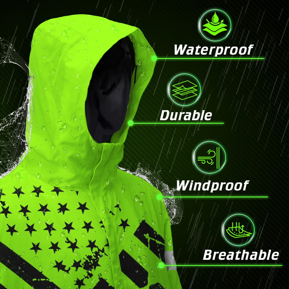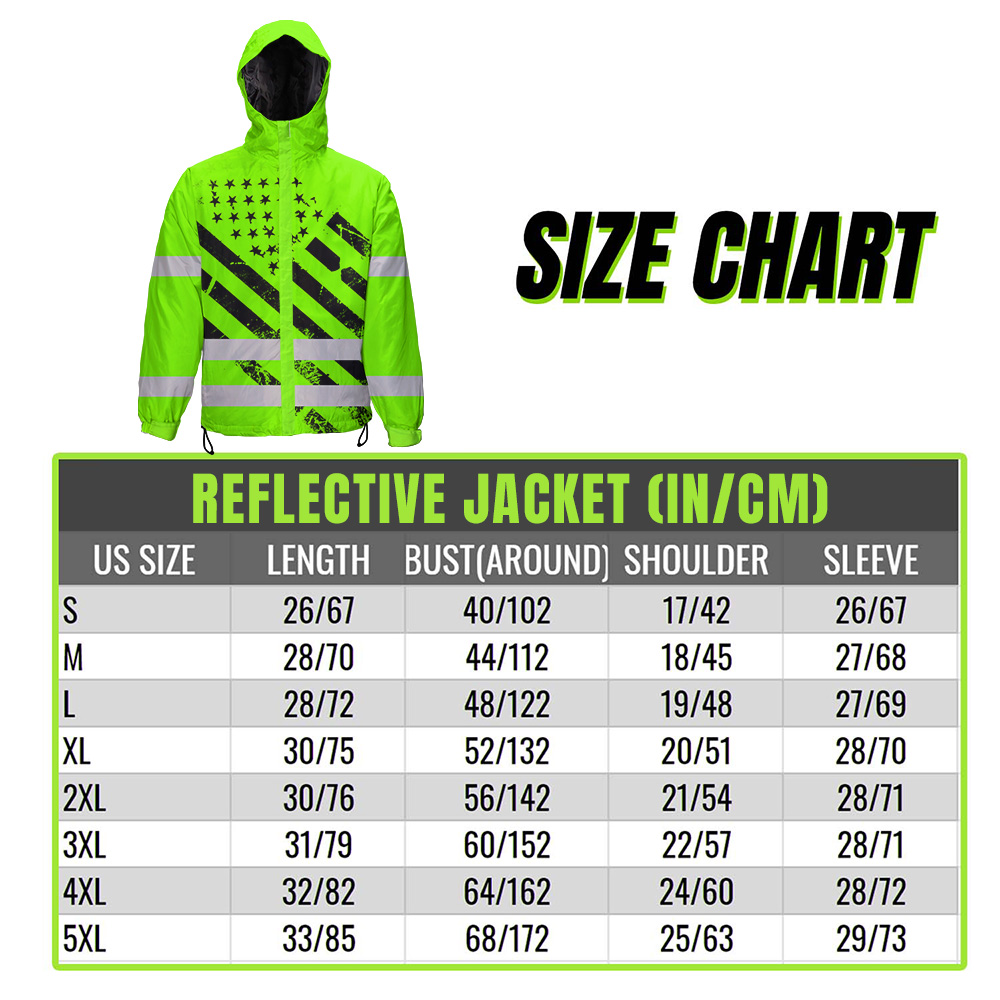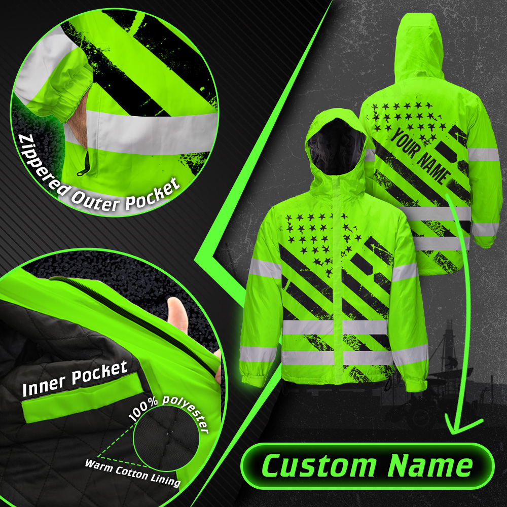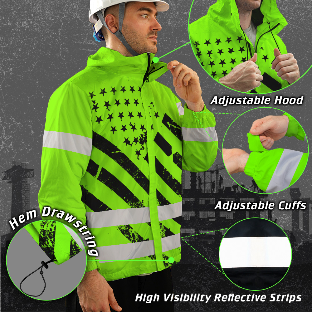 Hi Vis Jacket Waterproof And Windproof Reflective Black Green USA Flag