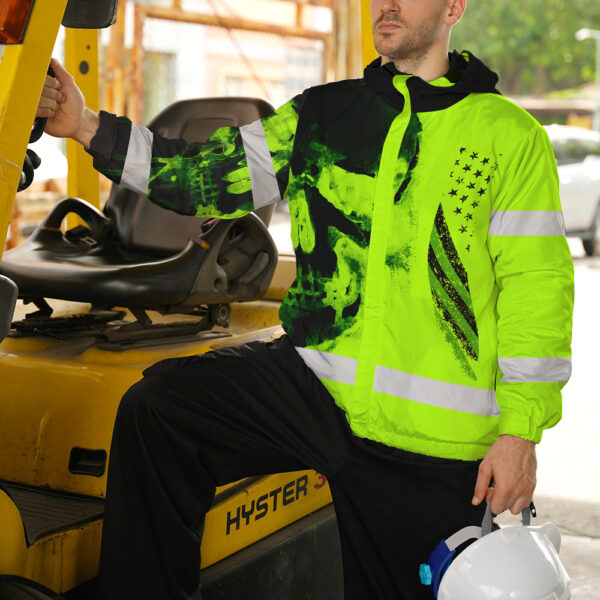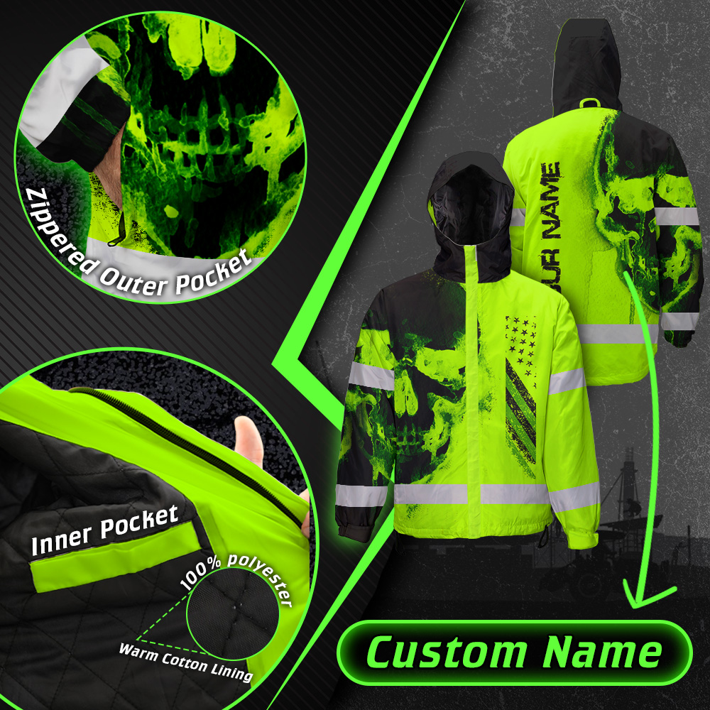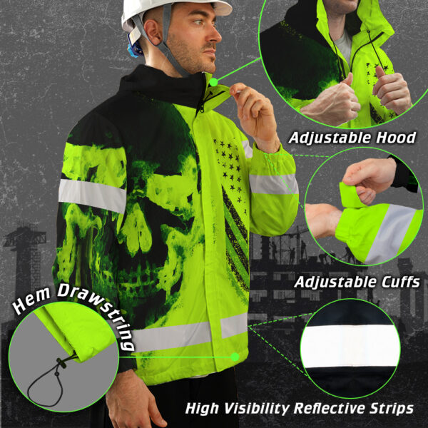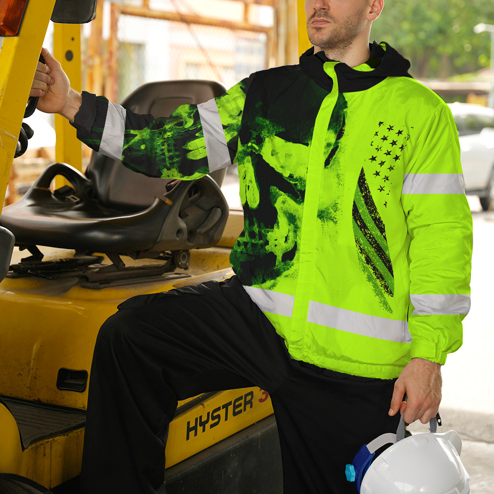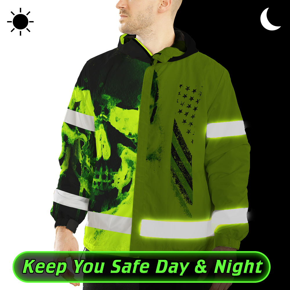 408ADIURJ027-Hi Vis Jacket Waterproof And Windproof Reflective Black Skull USA Flag