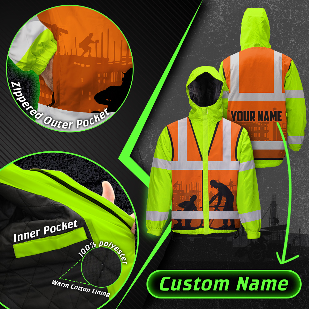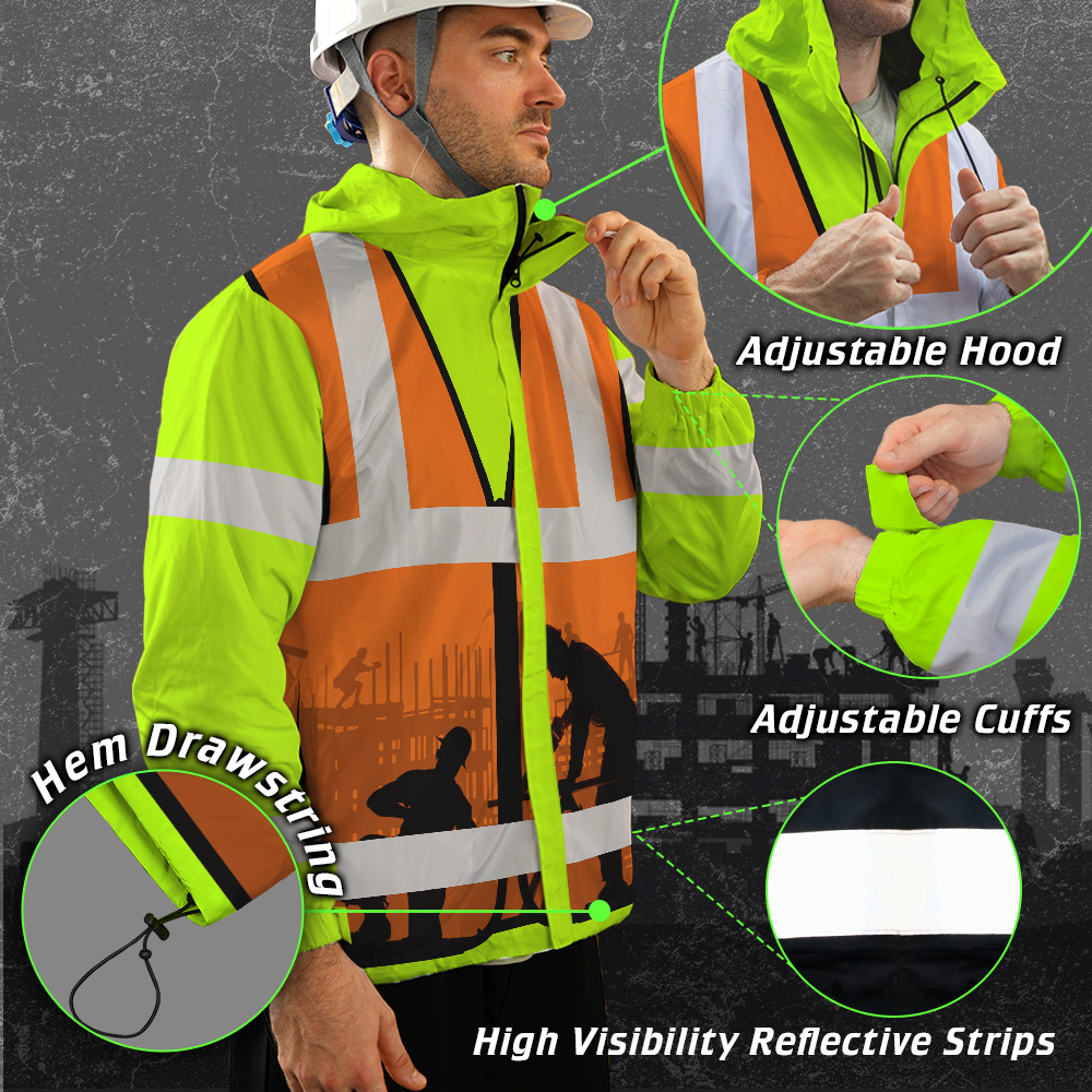 408ADIURJ020-Hi Vis Jacket Waterproof And Windproof Reflective Carpenter