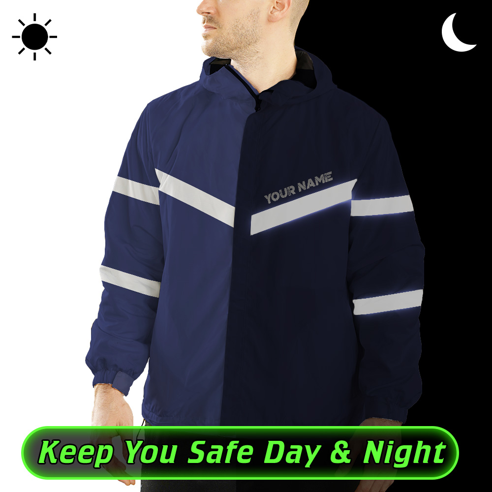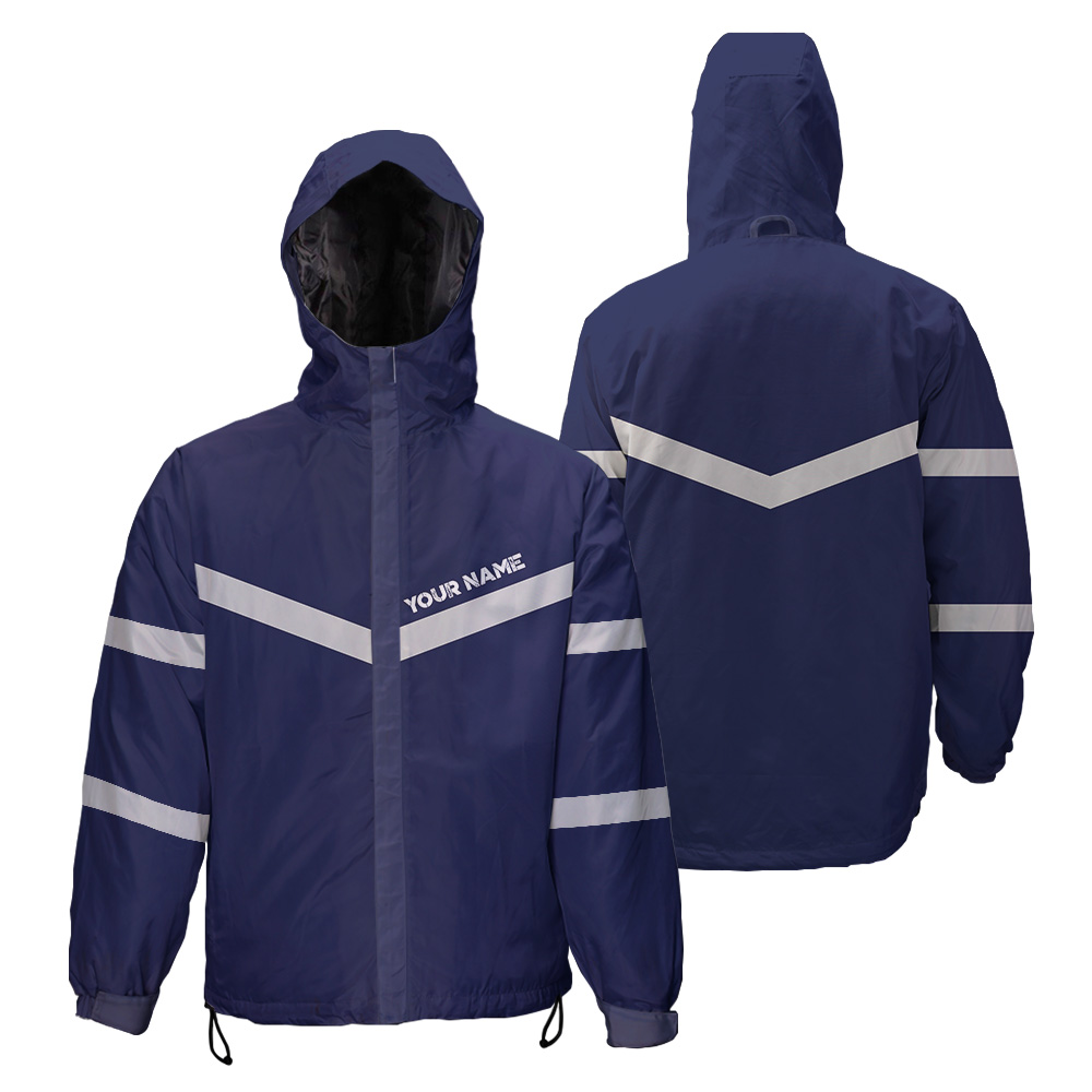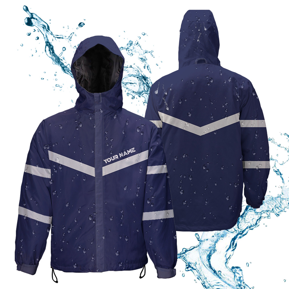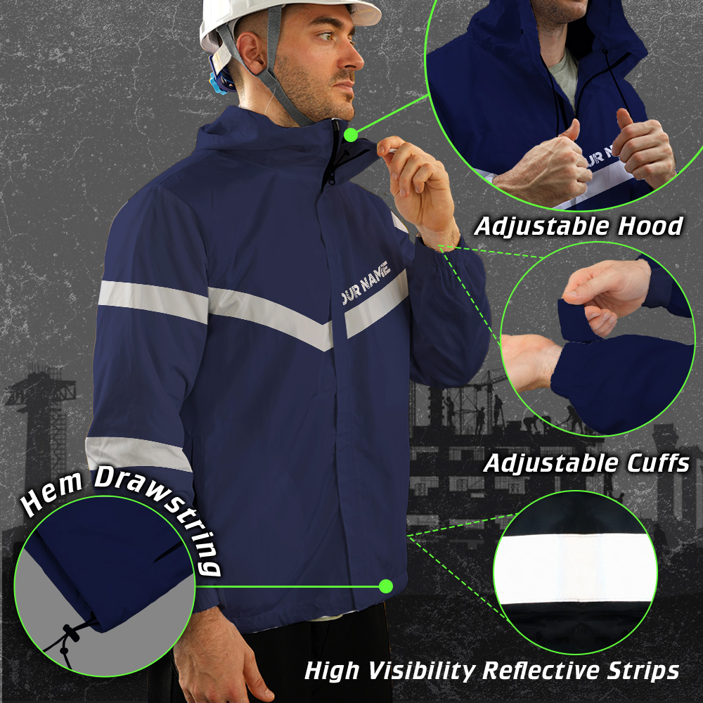 Hi Vis Jacket Waterproof And Windproof Reflective Dark Blue Custom Name Safety Workwear