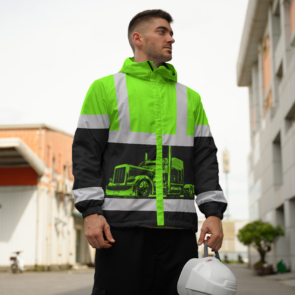 408ADIURJ002-Hi Vis Jacket Waterproof And Windproof Reflective Green Semi Truck Driver