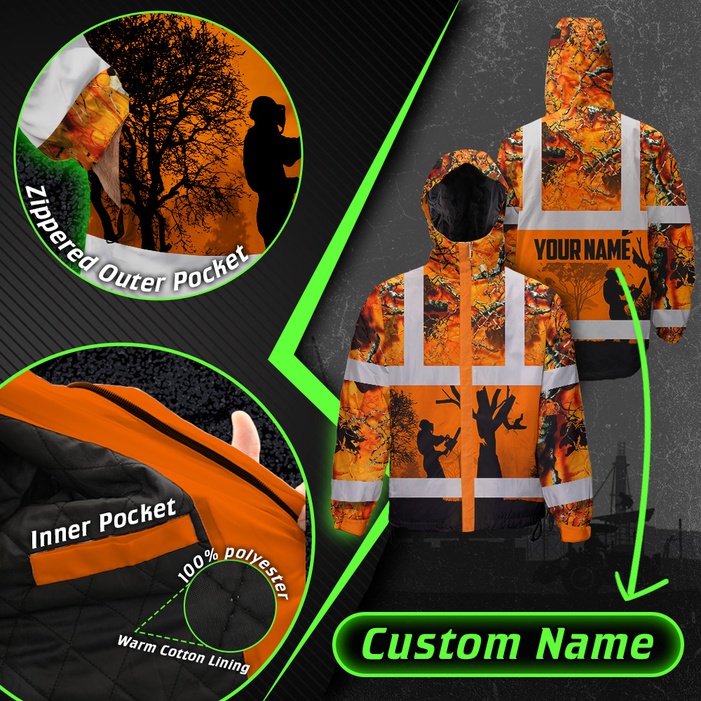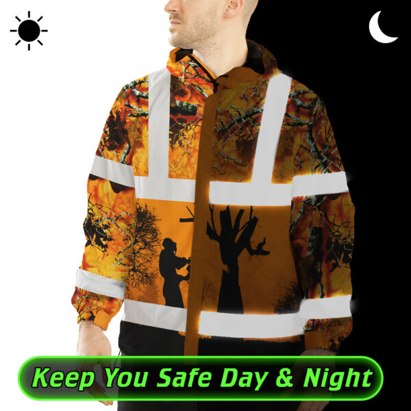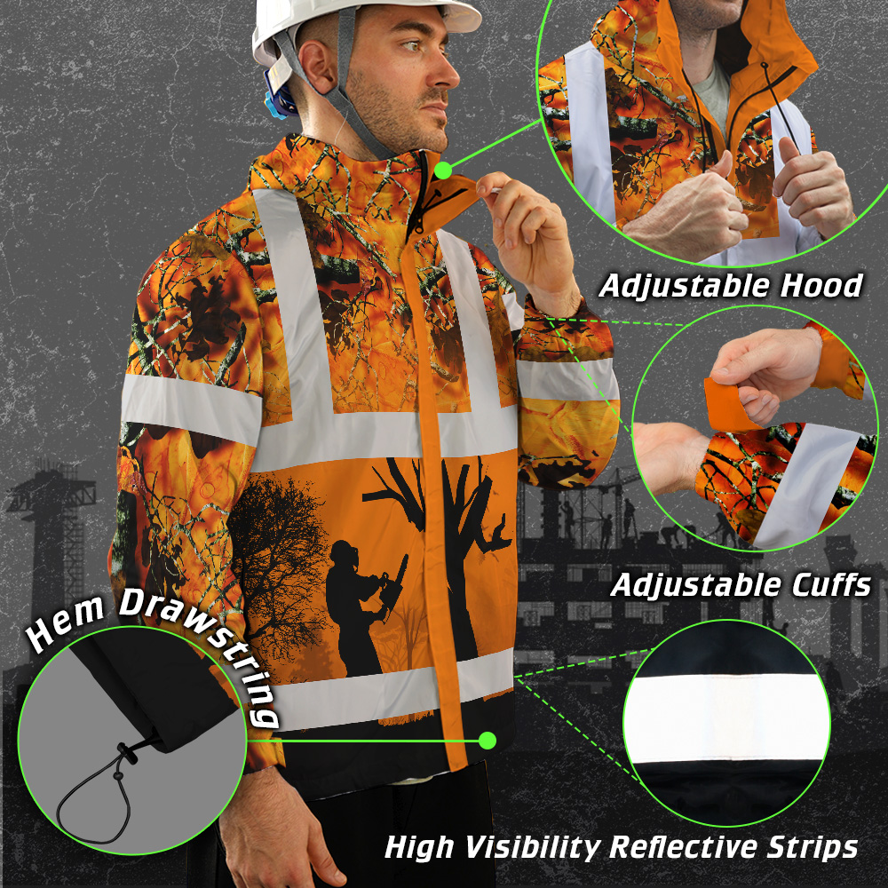 408ADIURJ025-Hi Vis Jacket Waterproof And Windproof Reflective Orange Camo Hunting Logger