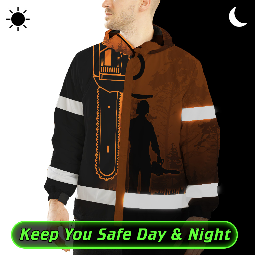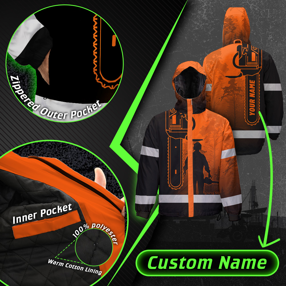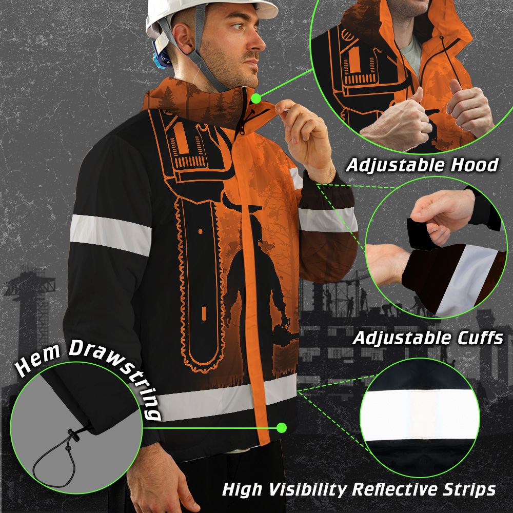 Hi Vis Jacket Waterproof And Windproof Reflective Orange Chainsaw Custom Name Safety Workwear For Truckers, Workers, Runners, Cyclists, Patriotic