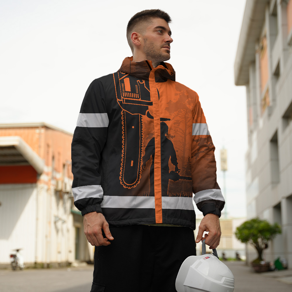 408ADIURJ019-Hi Vis Jacket Waterproof And Windproof Reflective Orange Chainsaw