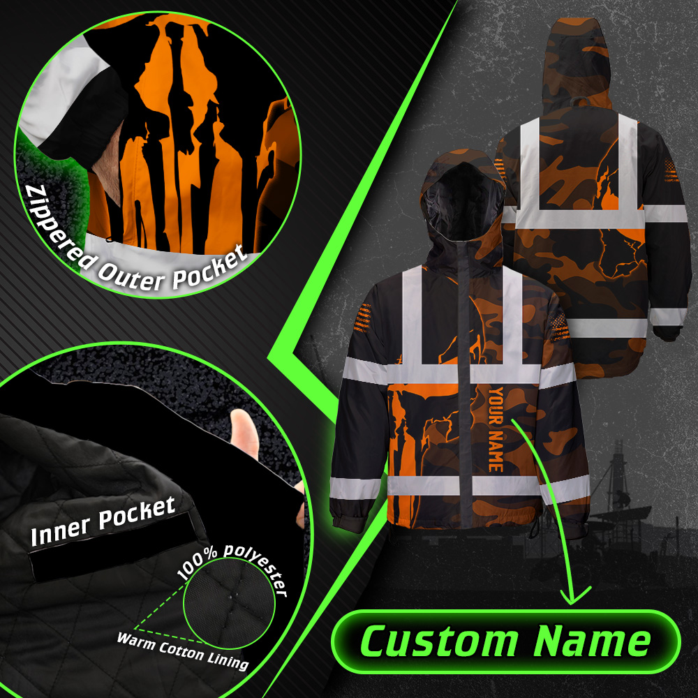 408ADIURJ032-Hi Vis Jacket Waterproof And Windproof Reflective Skull Orange Camo Neon