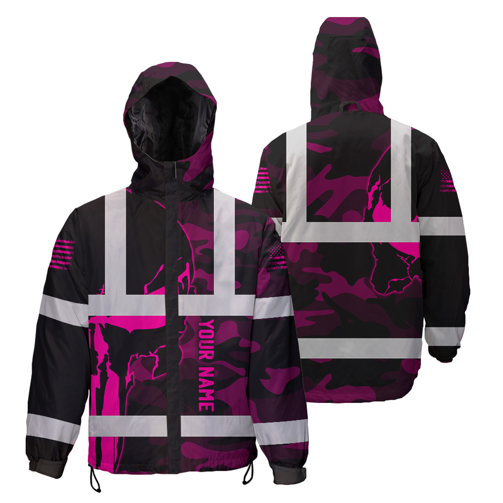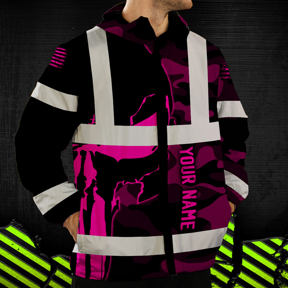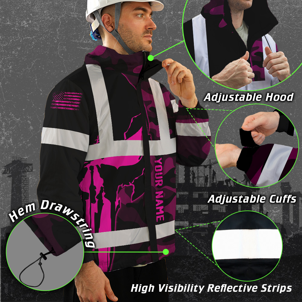 Hi Vis Jacket Waterproof And Windproof Reflective Skull Pink Camo Neon US Flag Custom Name Safety Workwear