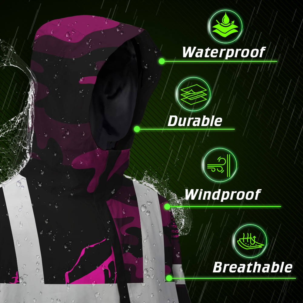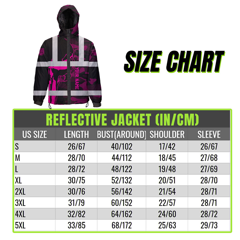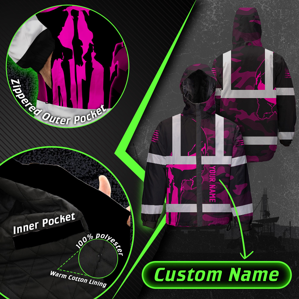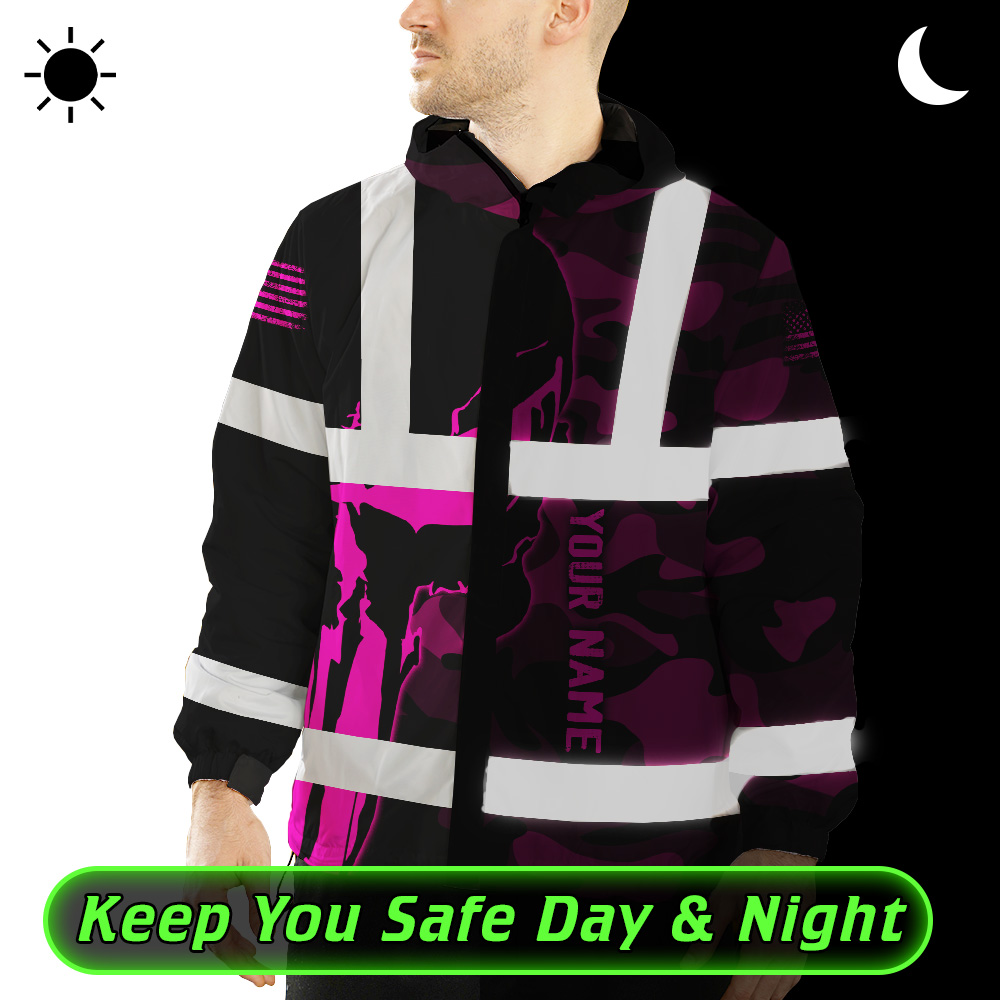 Hi Vis Jacket Waterproof And Windproof Reflective Skull Pink Camo Neon US Flag Custom Name Safety Workwear