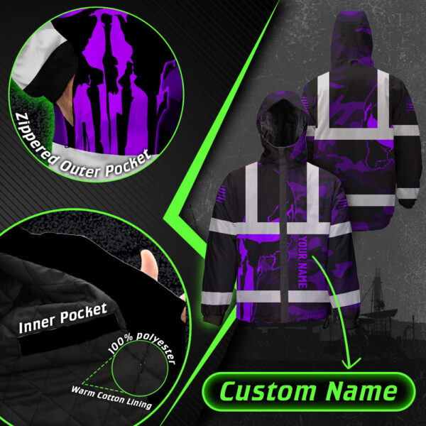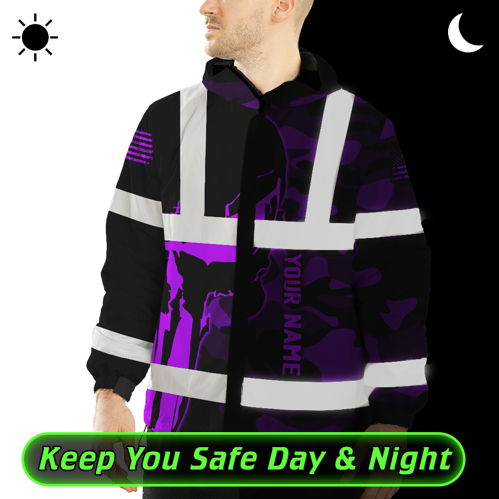 408ADIURJ031-Hi Vis Jacket Waterproof And Windproof Reflective Skull Violet Camo Neon