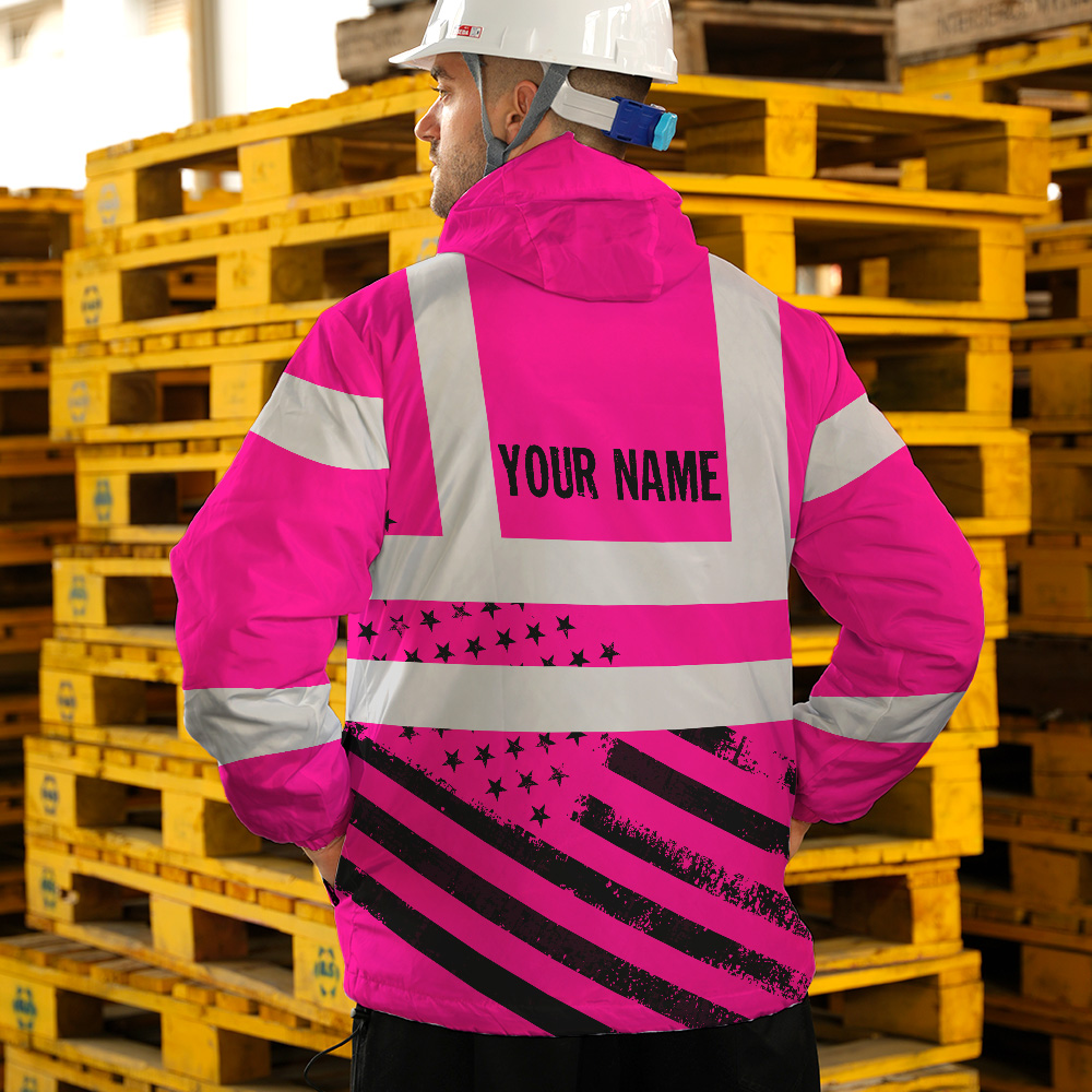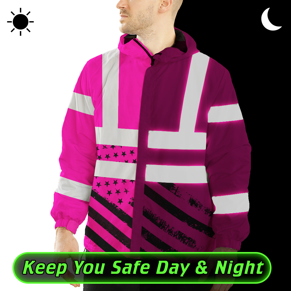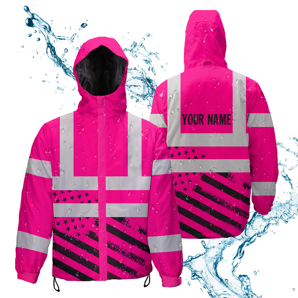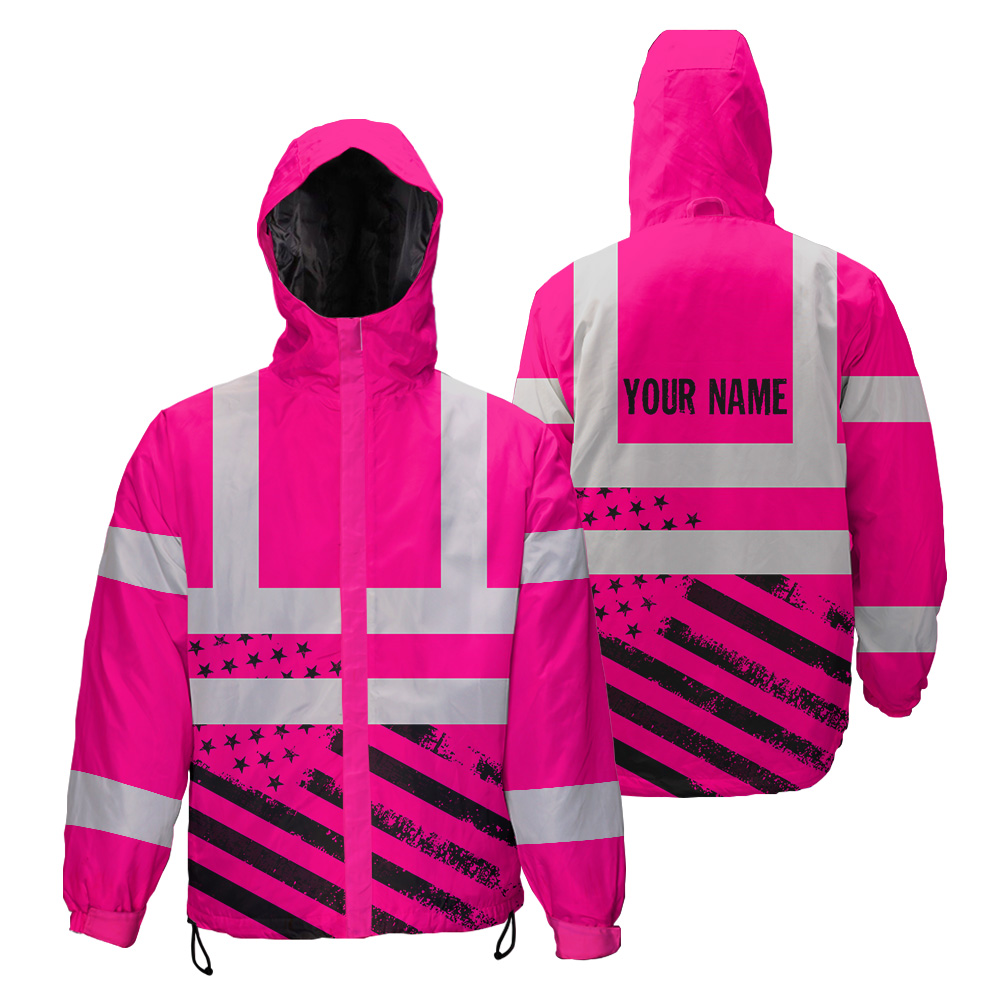 Hi Vis Jacket Waterproof And Windproof Reflective Tapes Pink USA Flag Safety Workwear For Workers