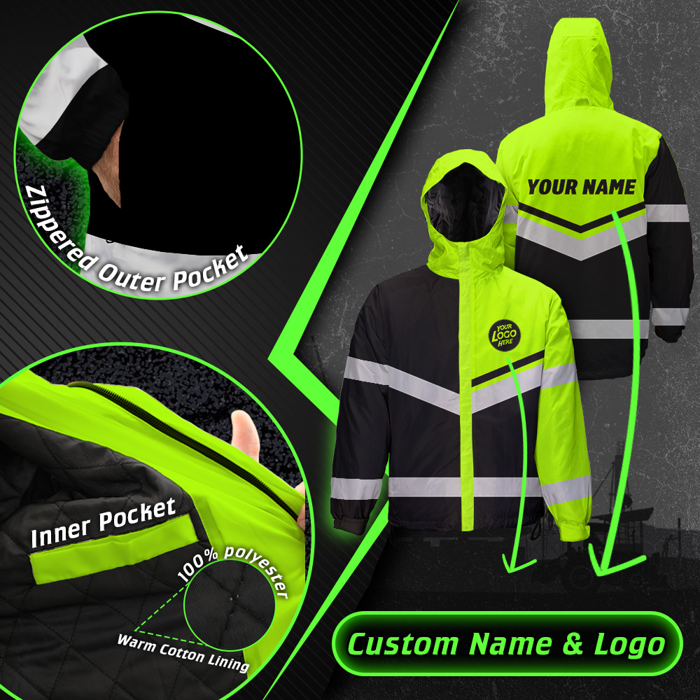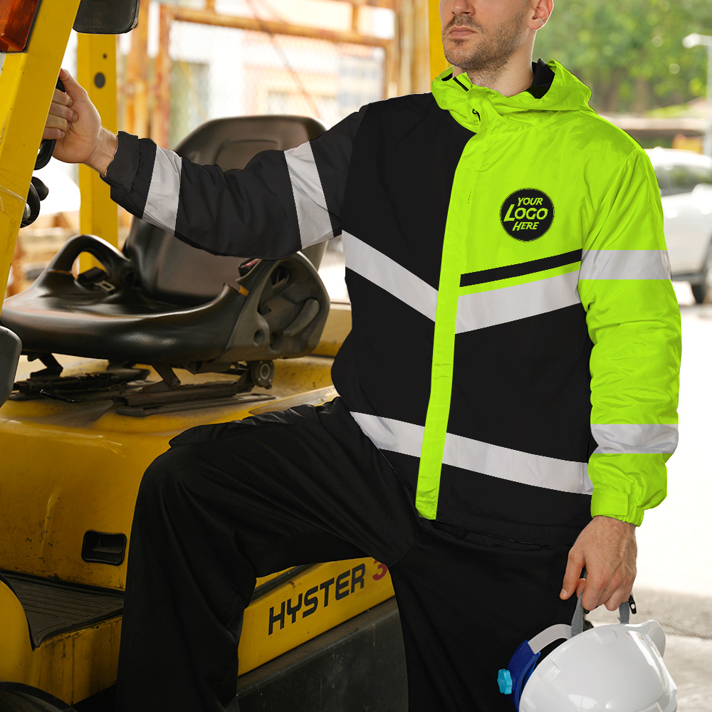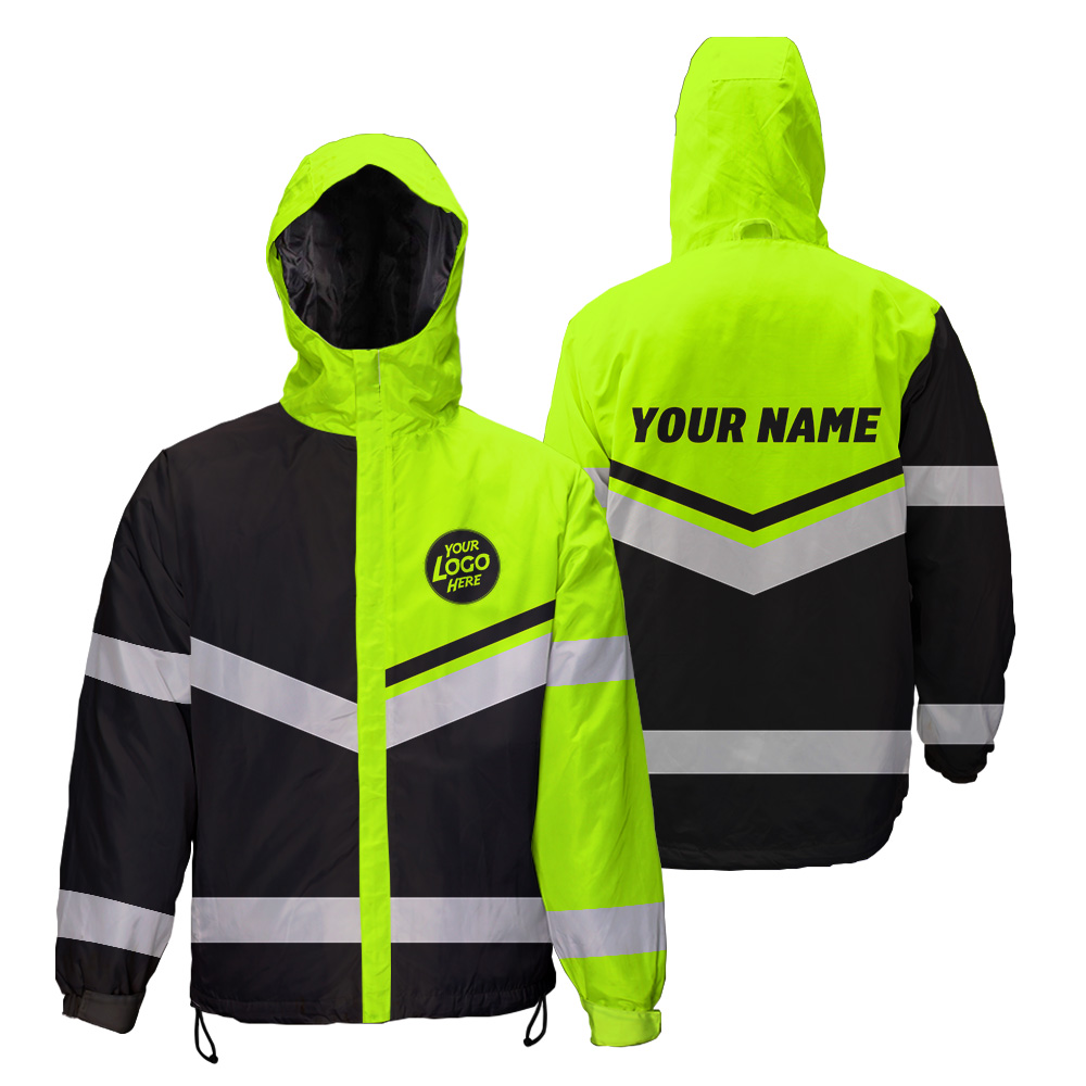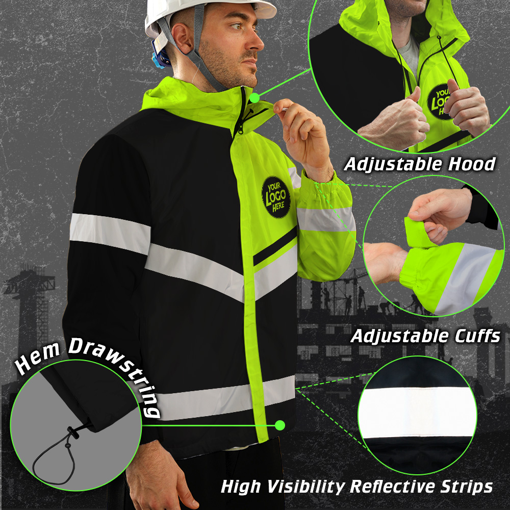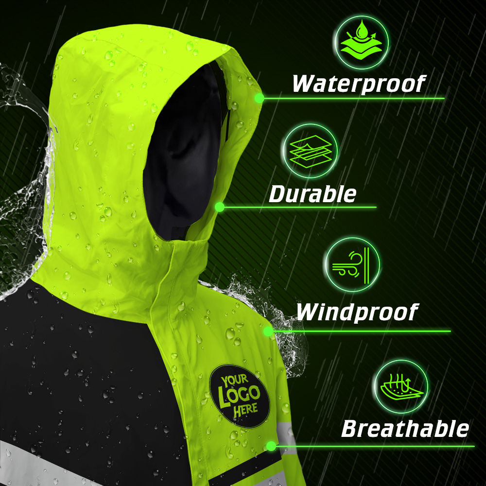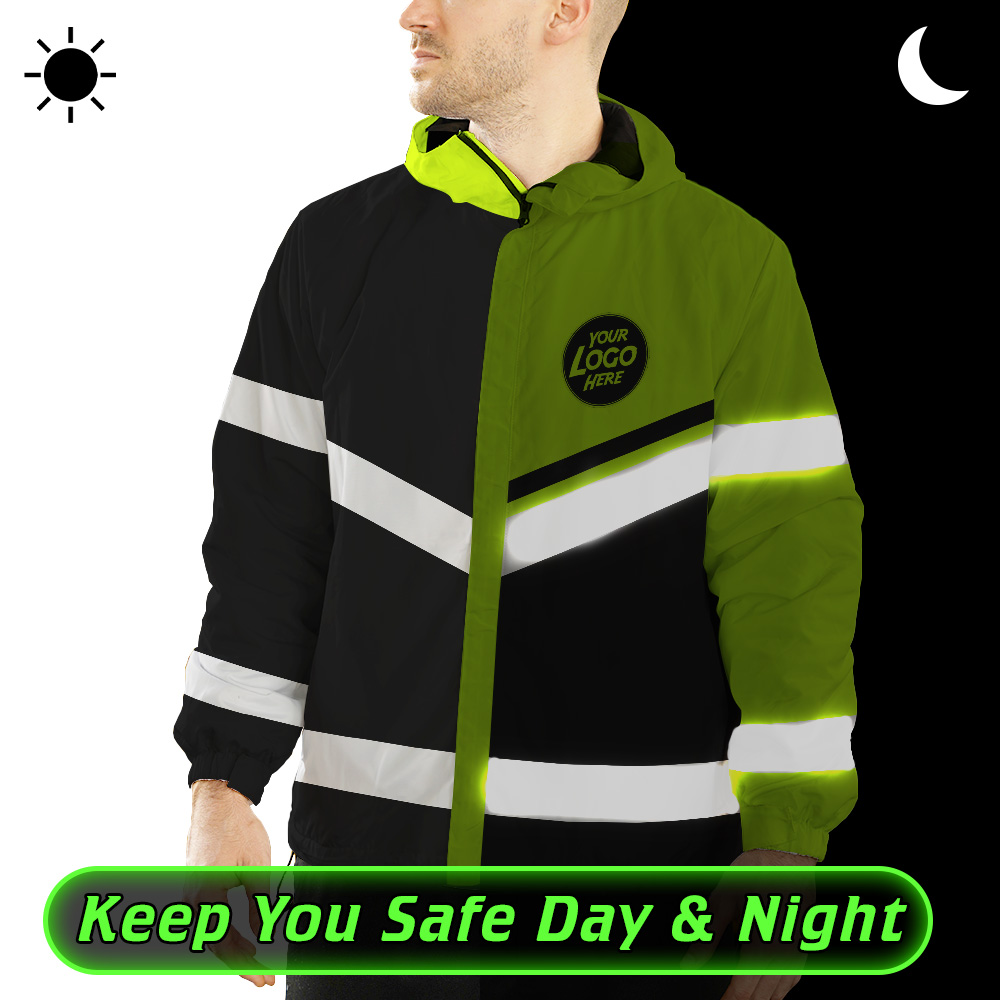 Hi Vis Jacket Waterproof And Windproof Uniform Reflective Black Green Neon