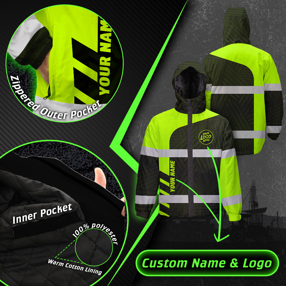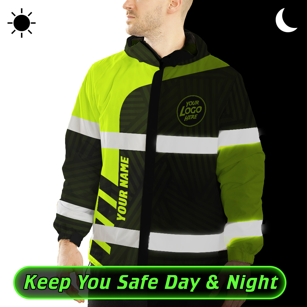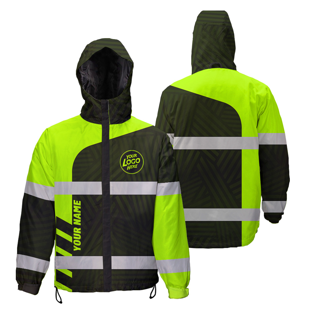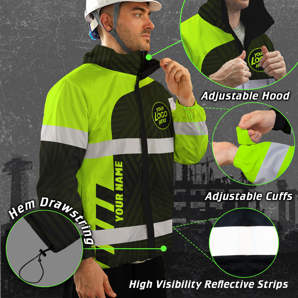 Hi Vis Jacket Waterproof And Windproof Uniform Reflective Black Green Neon Workware