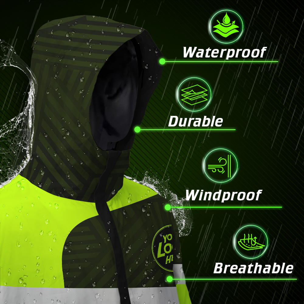 - Keeps you dry and visible in challenging environments