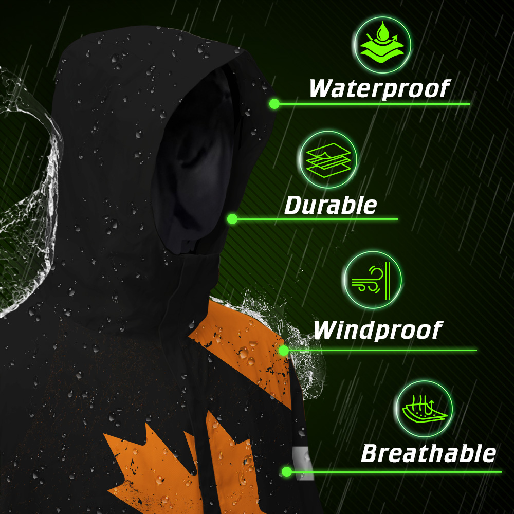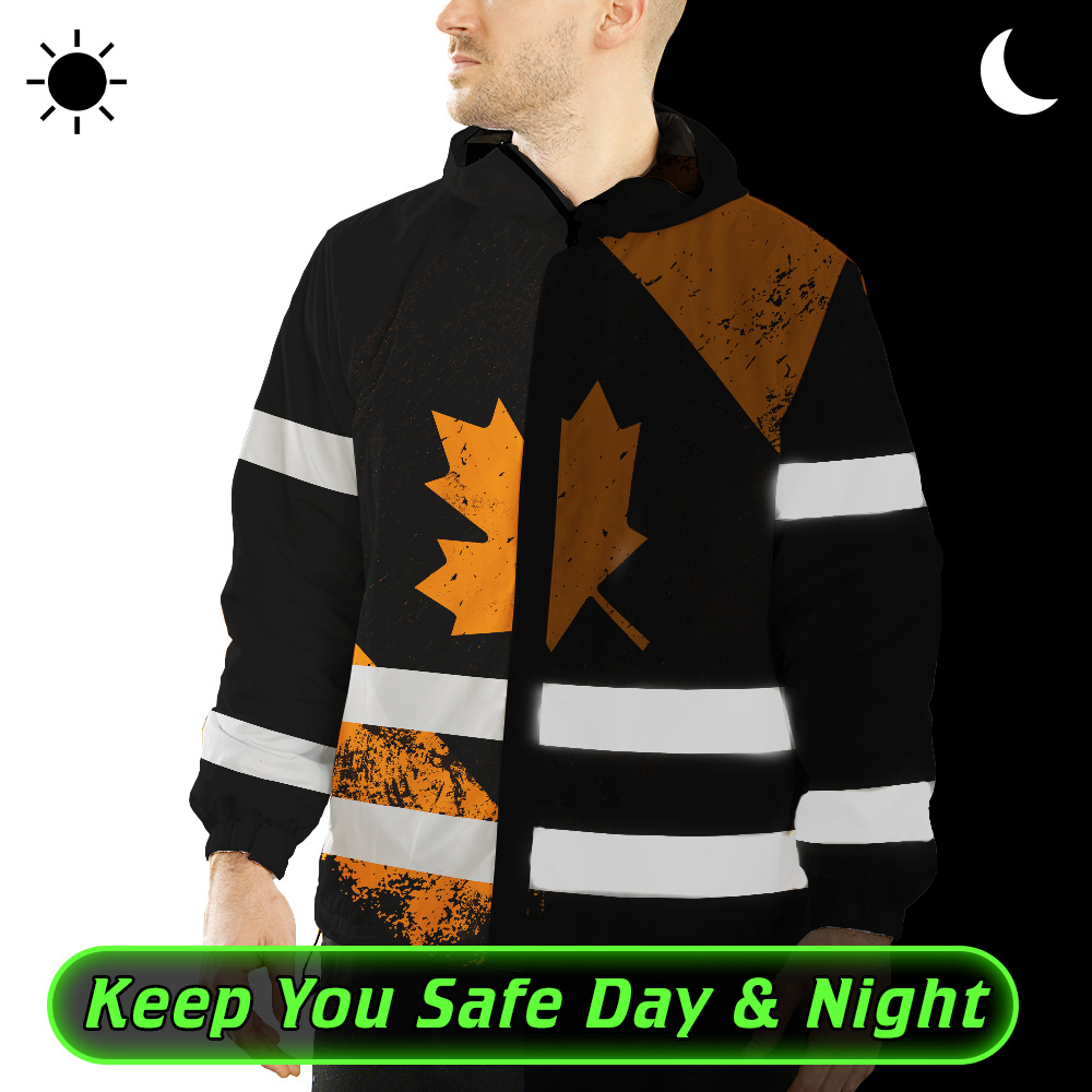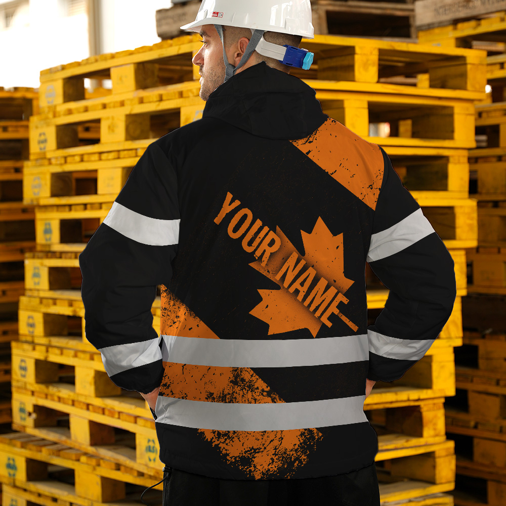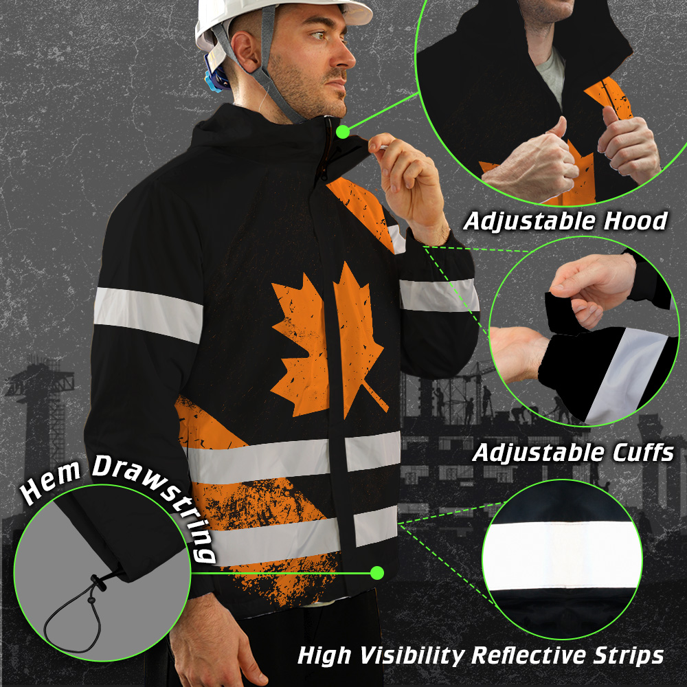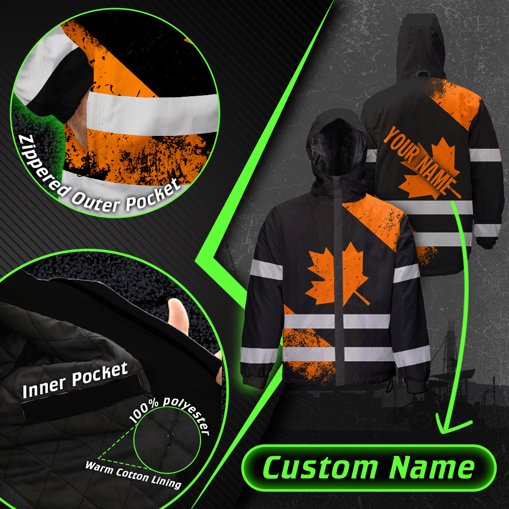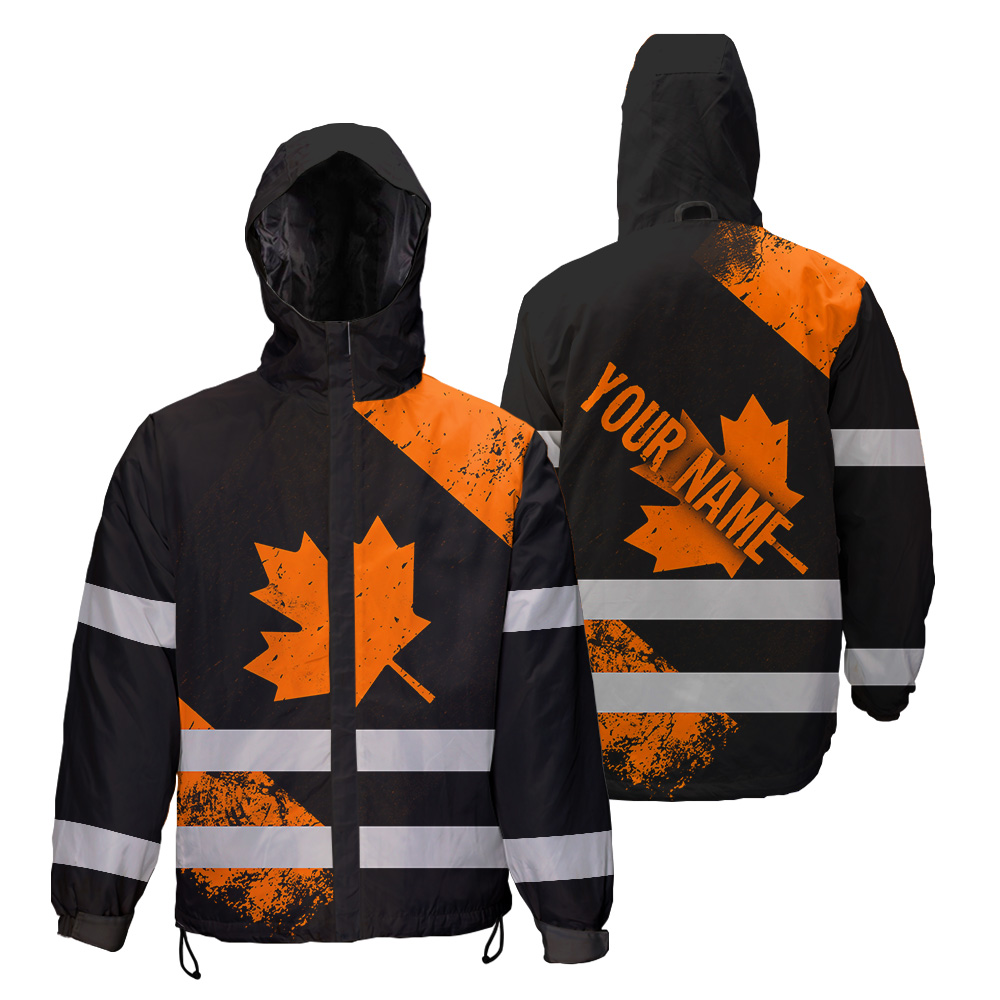Hi Vis Jacket Waterproof Black Orange Canada Flag Custom Name