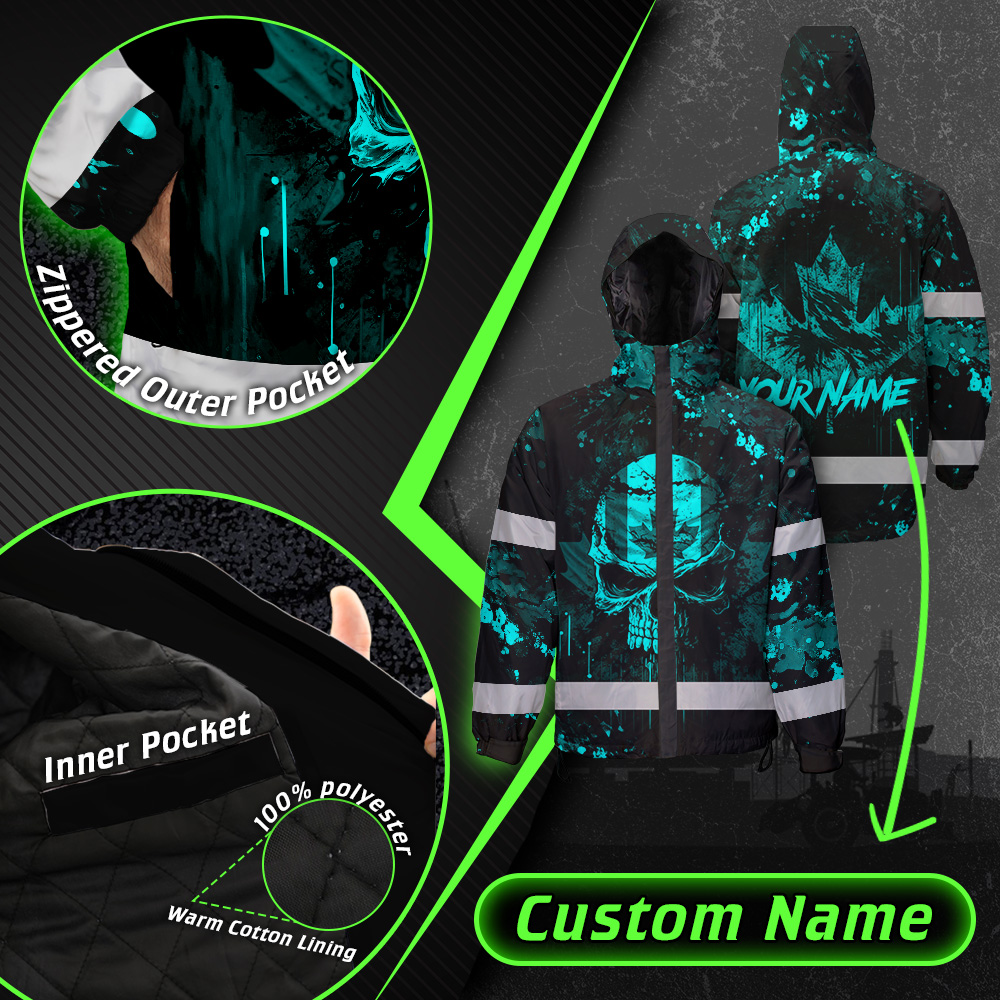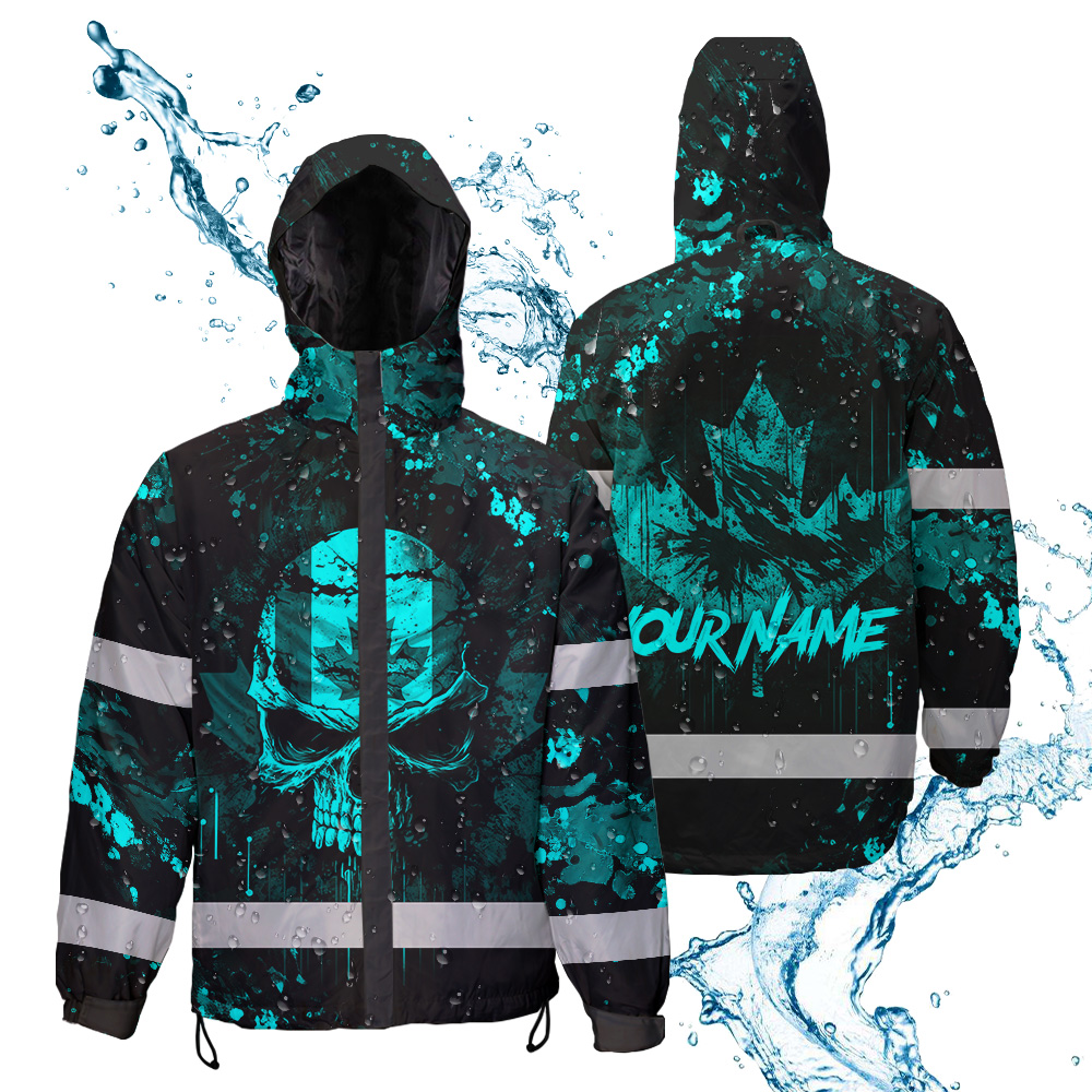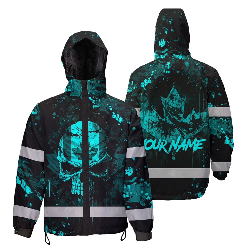 Hi Vis Jacket Waterproof Blue Neon Skull Paint Flakes Canada Flag Custom Name