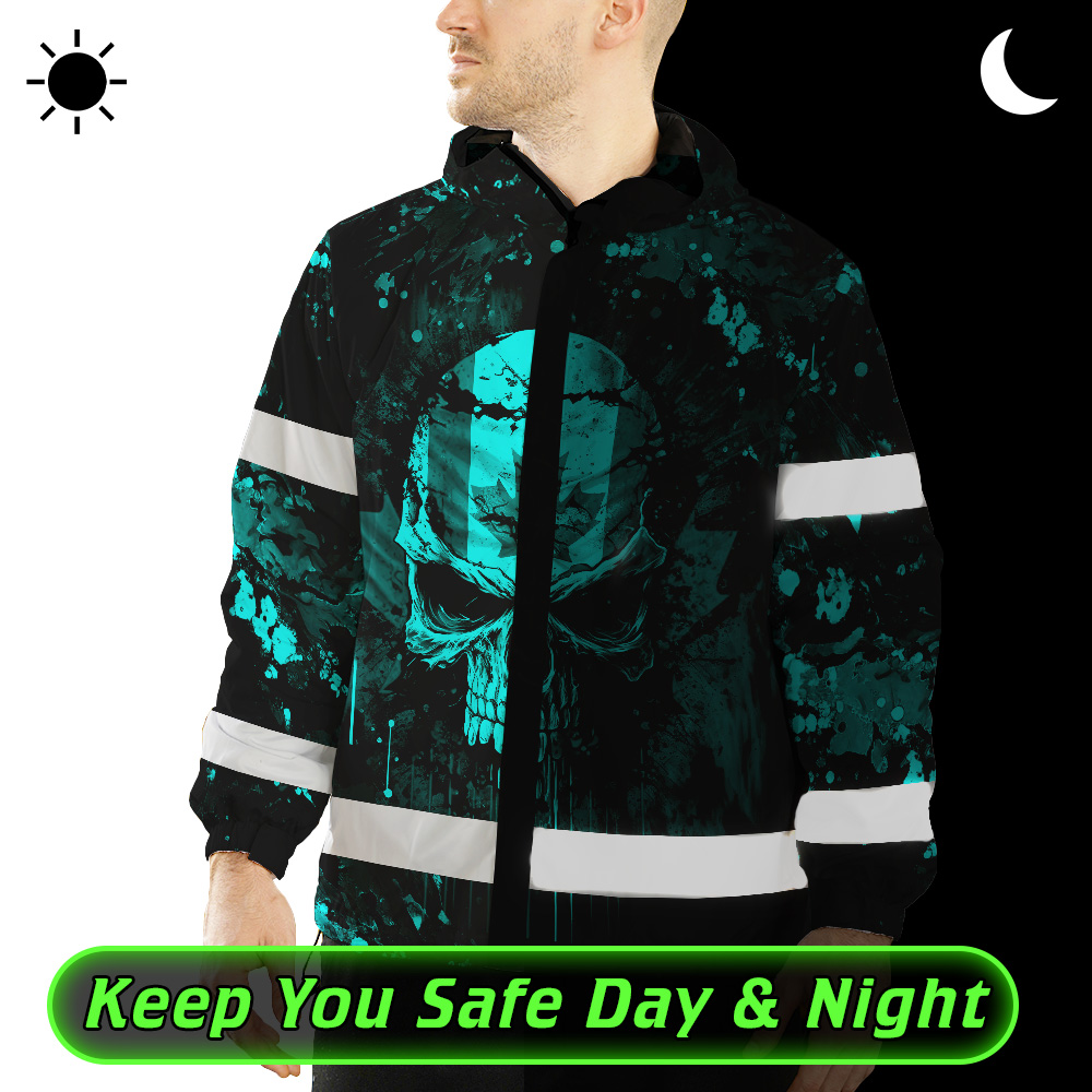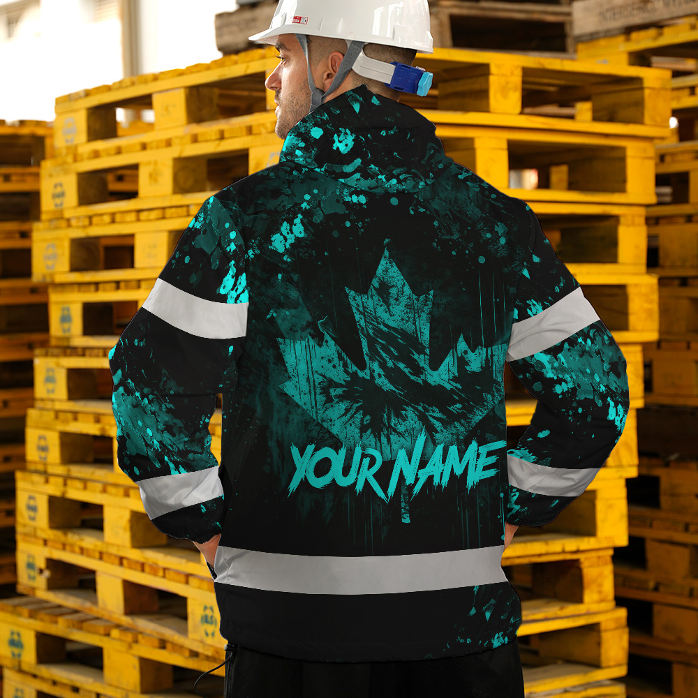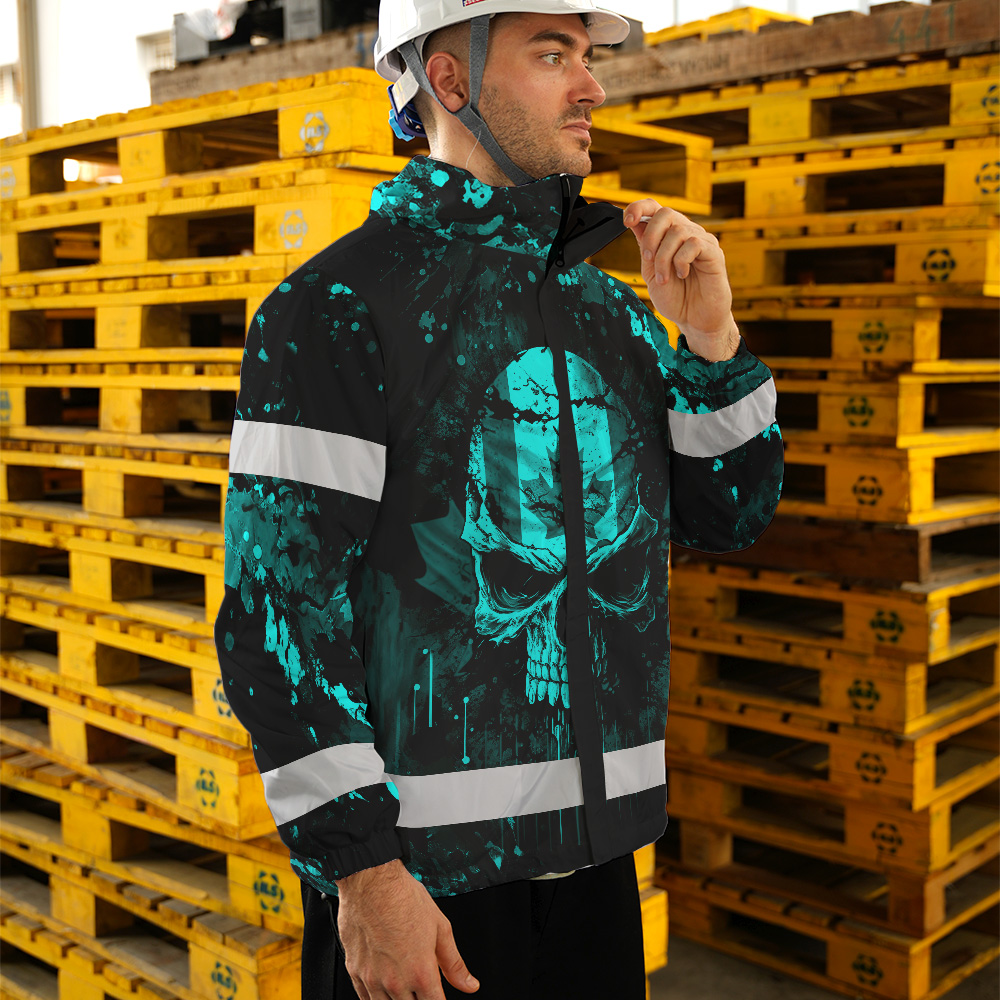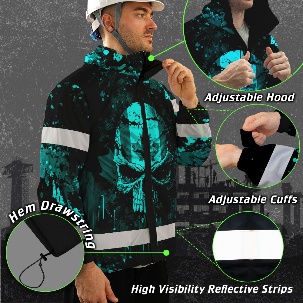 Hi Vis Jacket Waterproof Blue Neon Skull Paint Flakes Canada Flag Custom Name