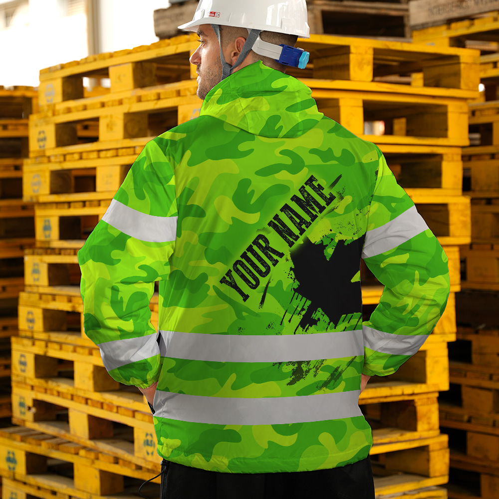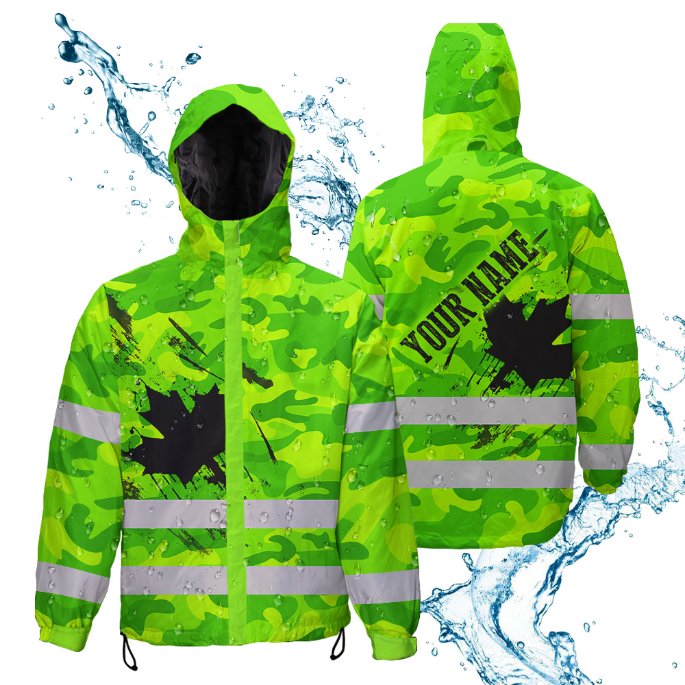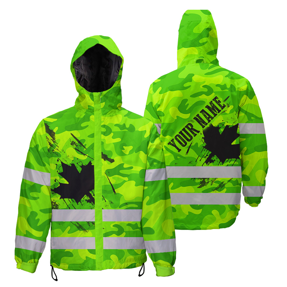 509ADIURJ035-Hi Vis Jacket Waterproof Green Neon Camo CA Flag Custom Name