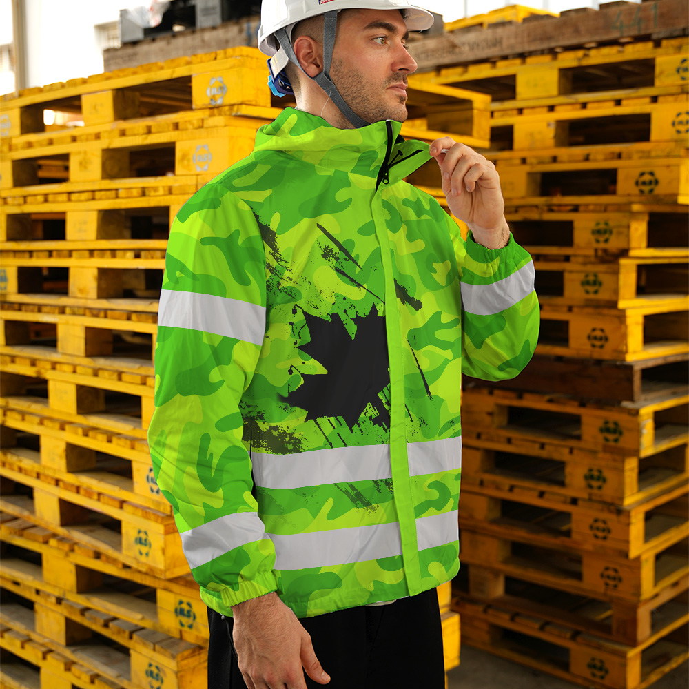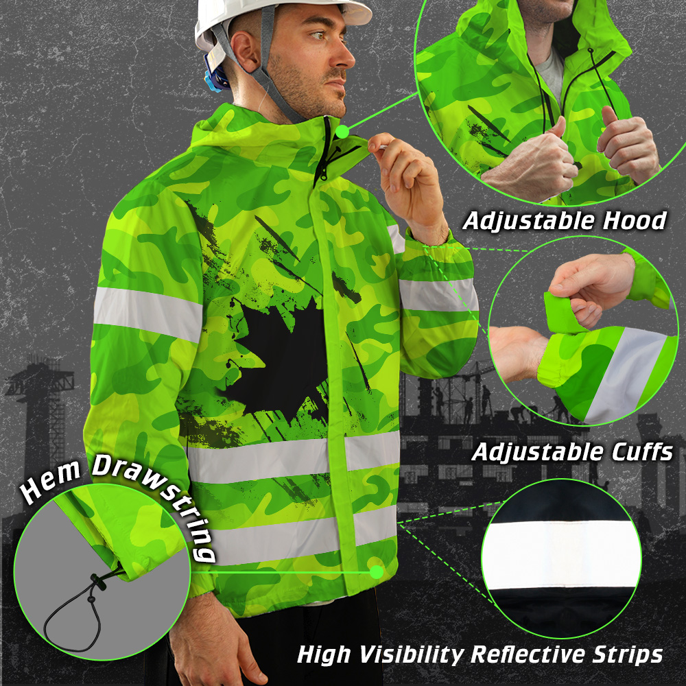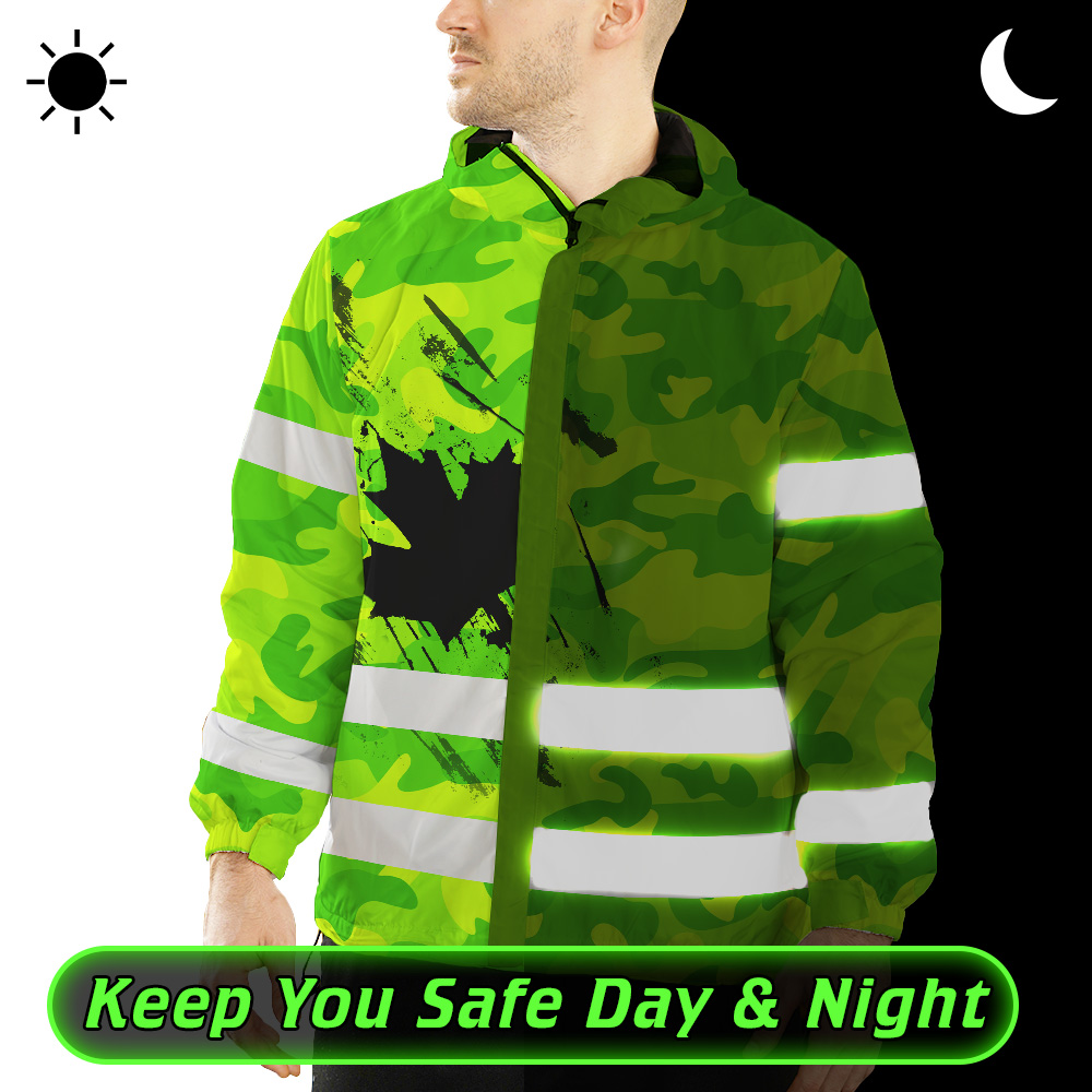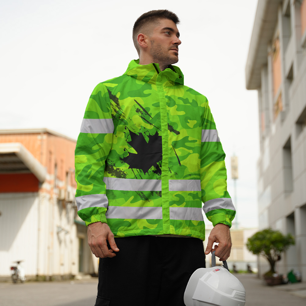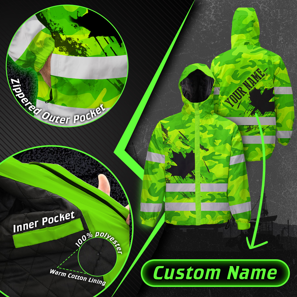 Hi Vis Jacket Waterproof Green Neon Camo CA Flag Custom Name