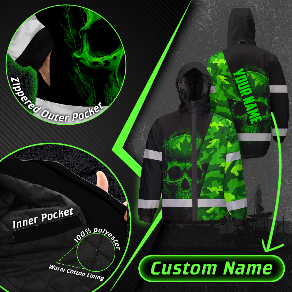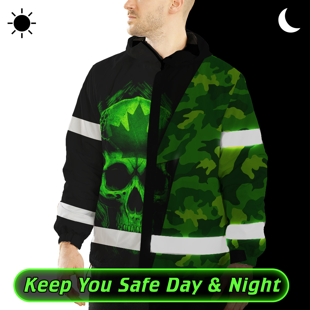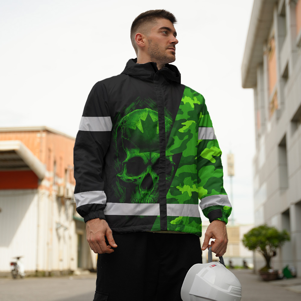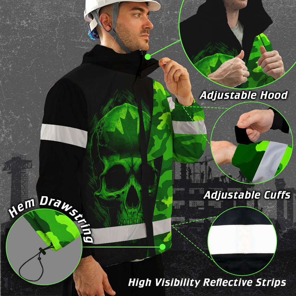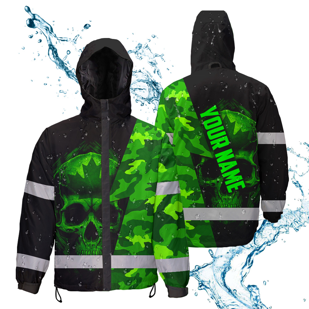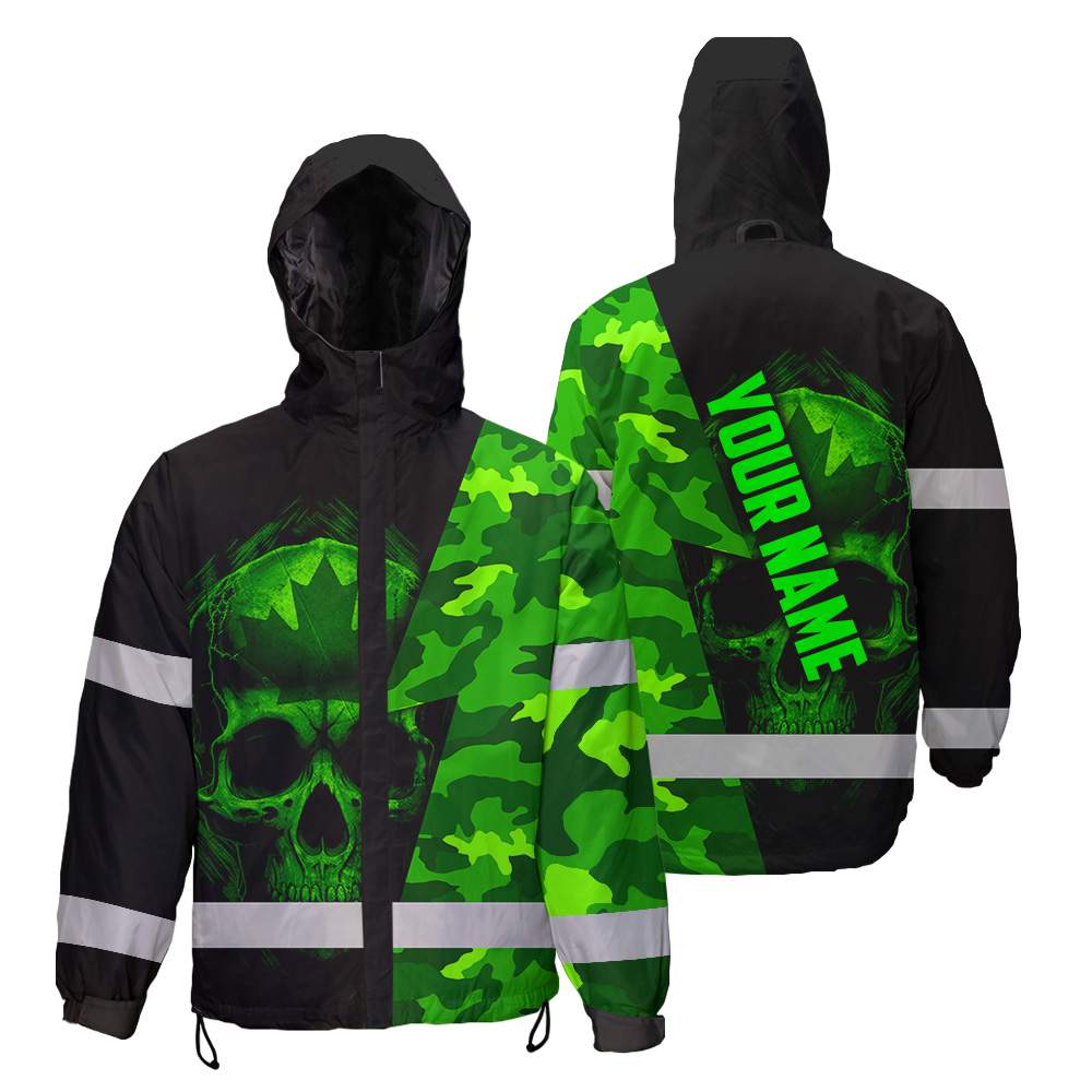 Hi Vis Jacket Waterproof Green Neon Camo Canada Flag Custom Name