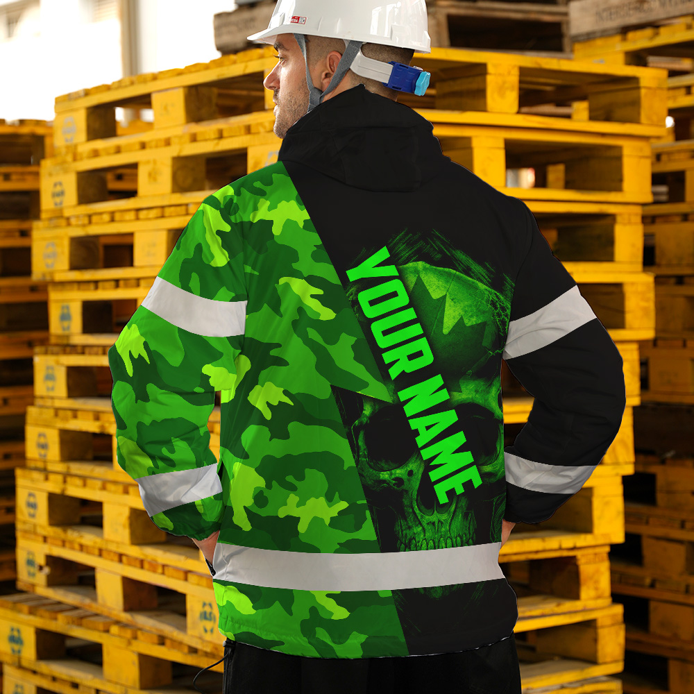 509ADIURJ021-Hi Vis Jacket Waterproof Green Neon Camo Canada Flag Custom Name