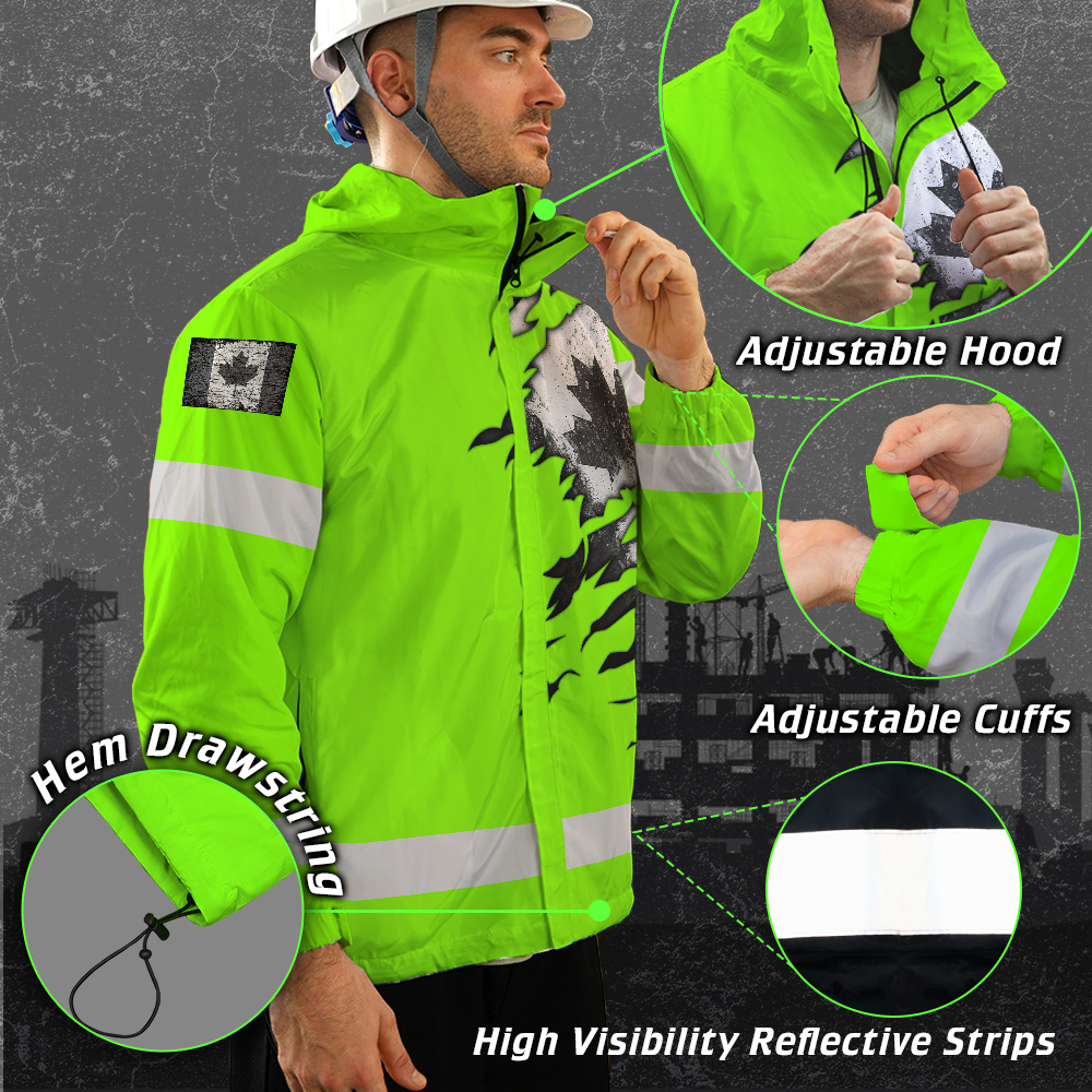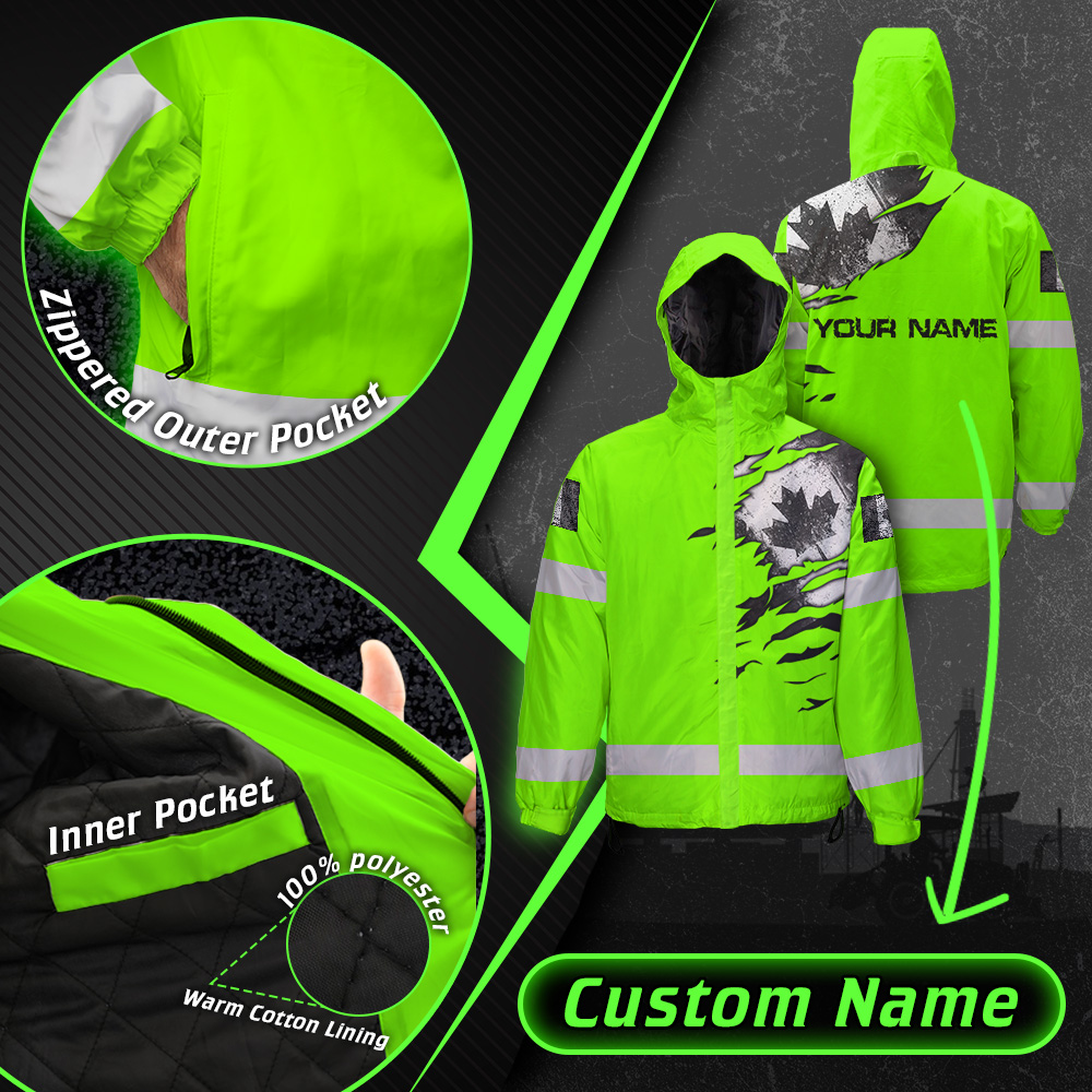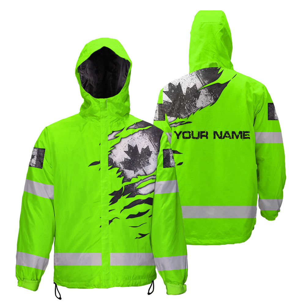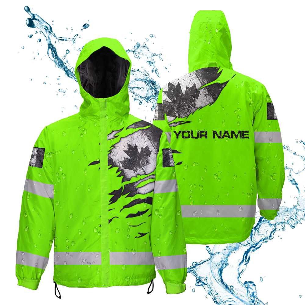 Hi Vis Jacket Waterproof Green Neon Scratch Canada Flag Custom Name