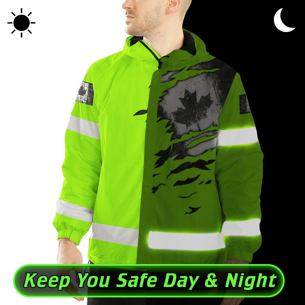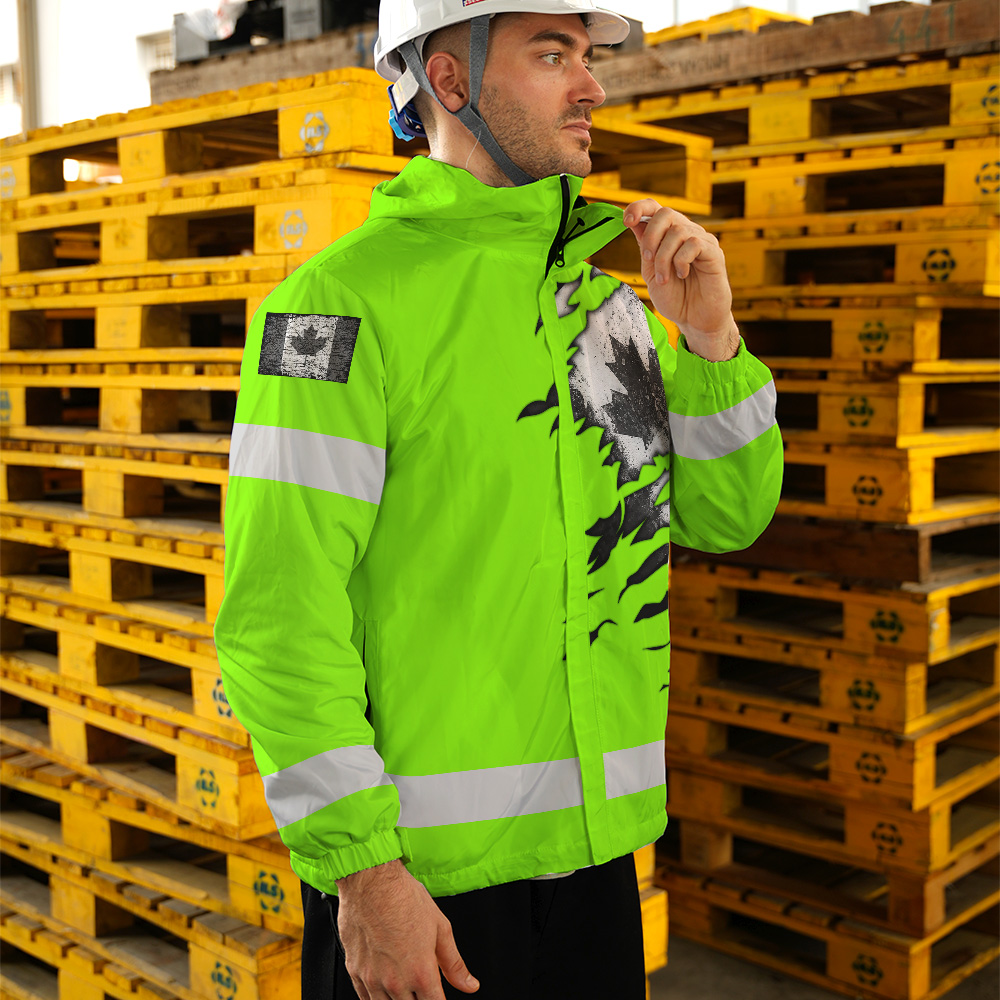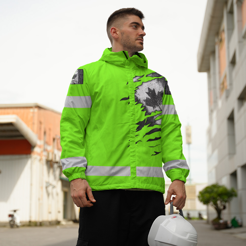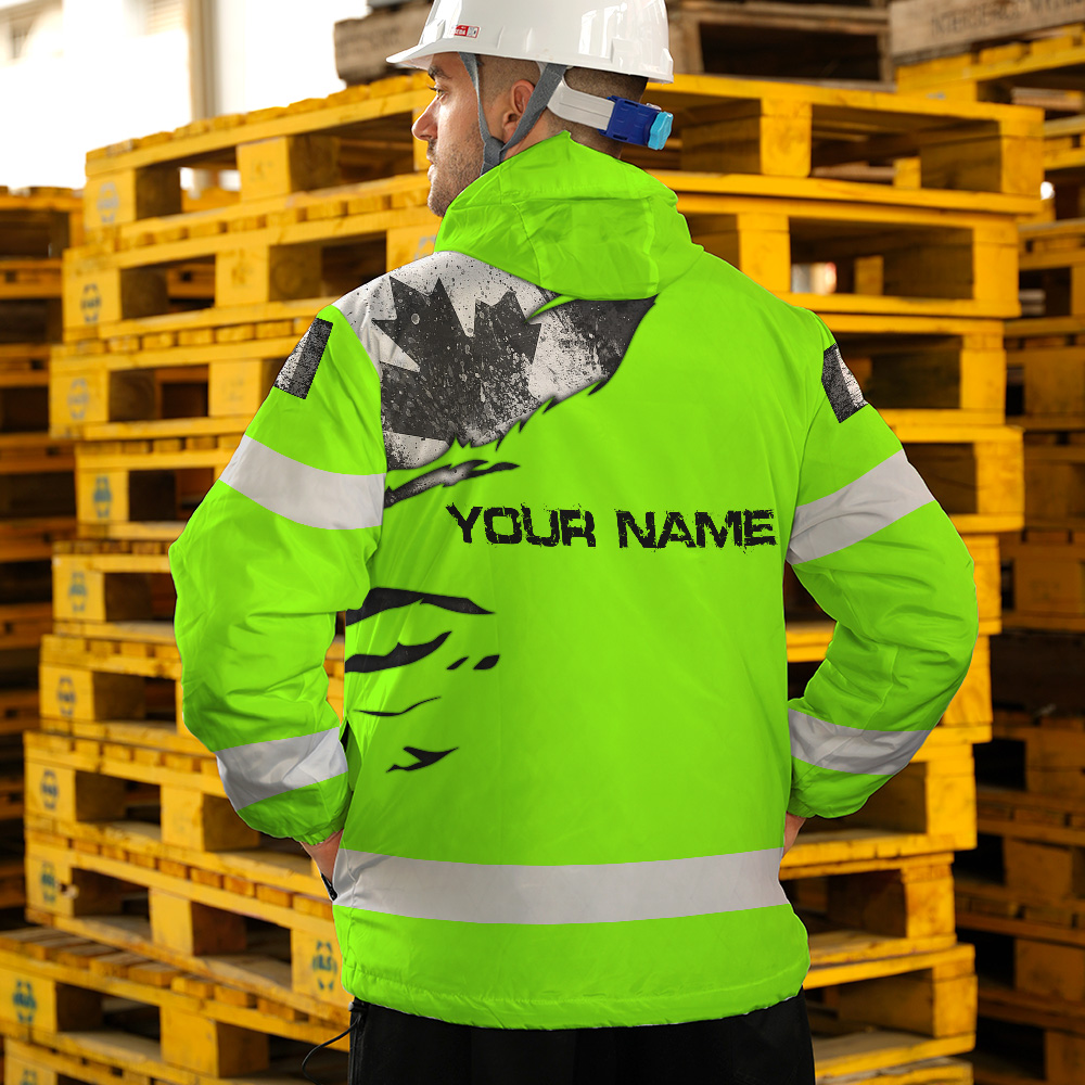 Hi Vis Jacket Waterproof Green Neon Scratch Canada Flag Custom Name