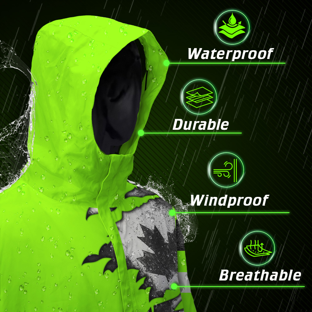 - Keeps you dry and visible in challenging environments