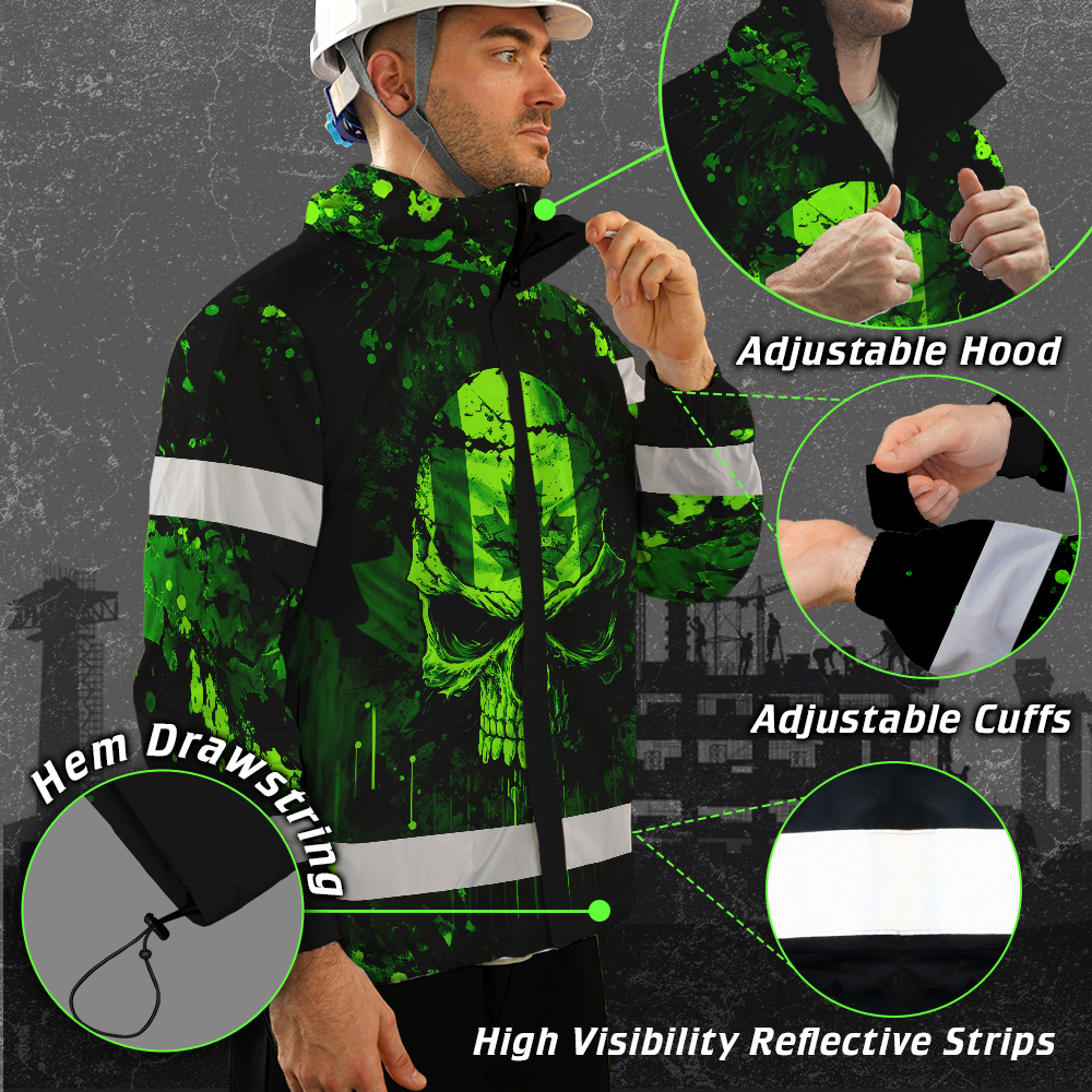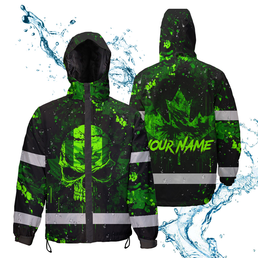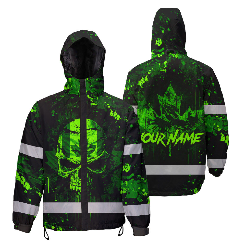 Hi Vis Jacket Waterproof Green Neon Skull Paint Flakes Canada Flag Custom Name