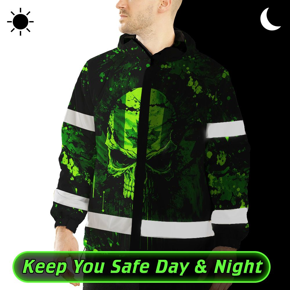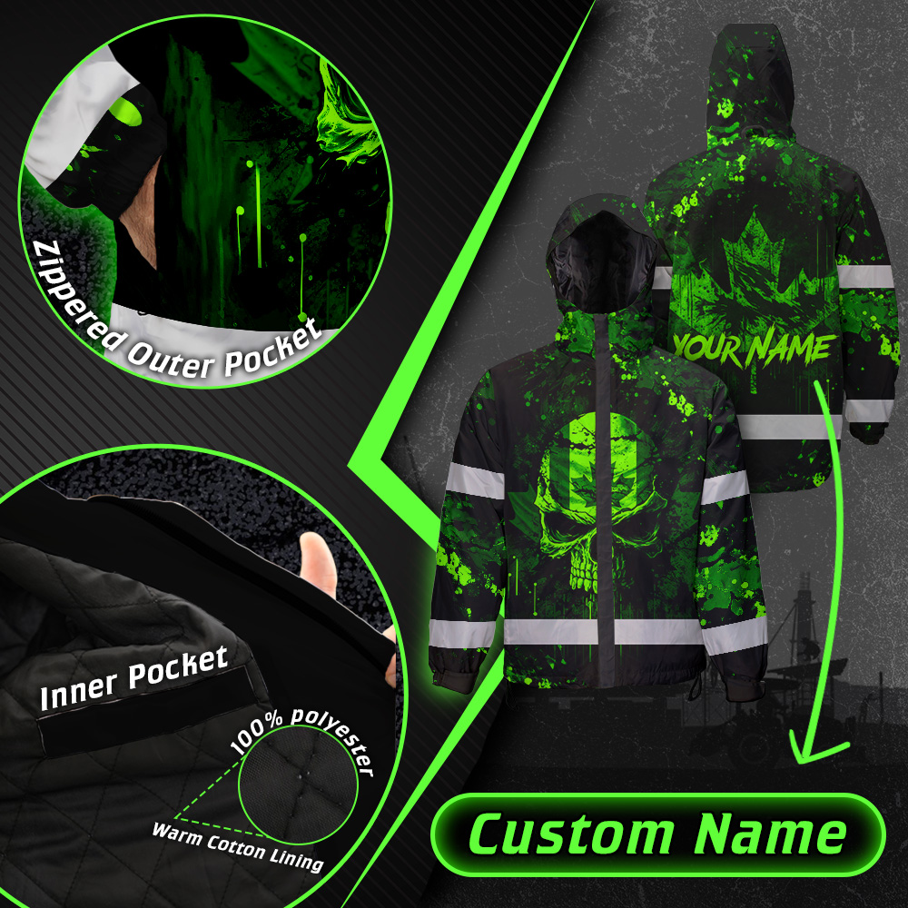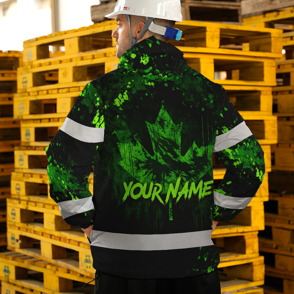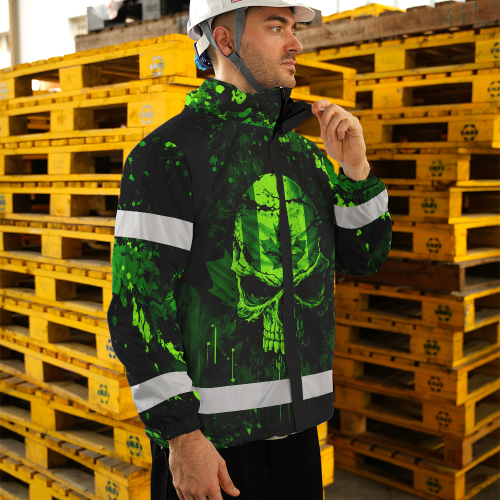 Hi Vis Jacket Waterproof Green Neon Skull Paint Flakes Canada Flag Custom Name