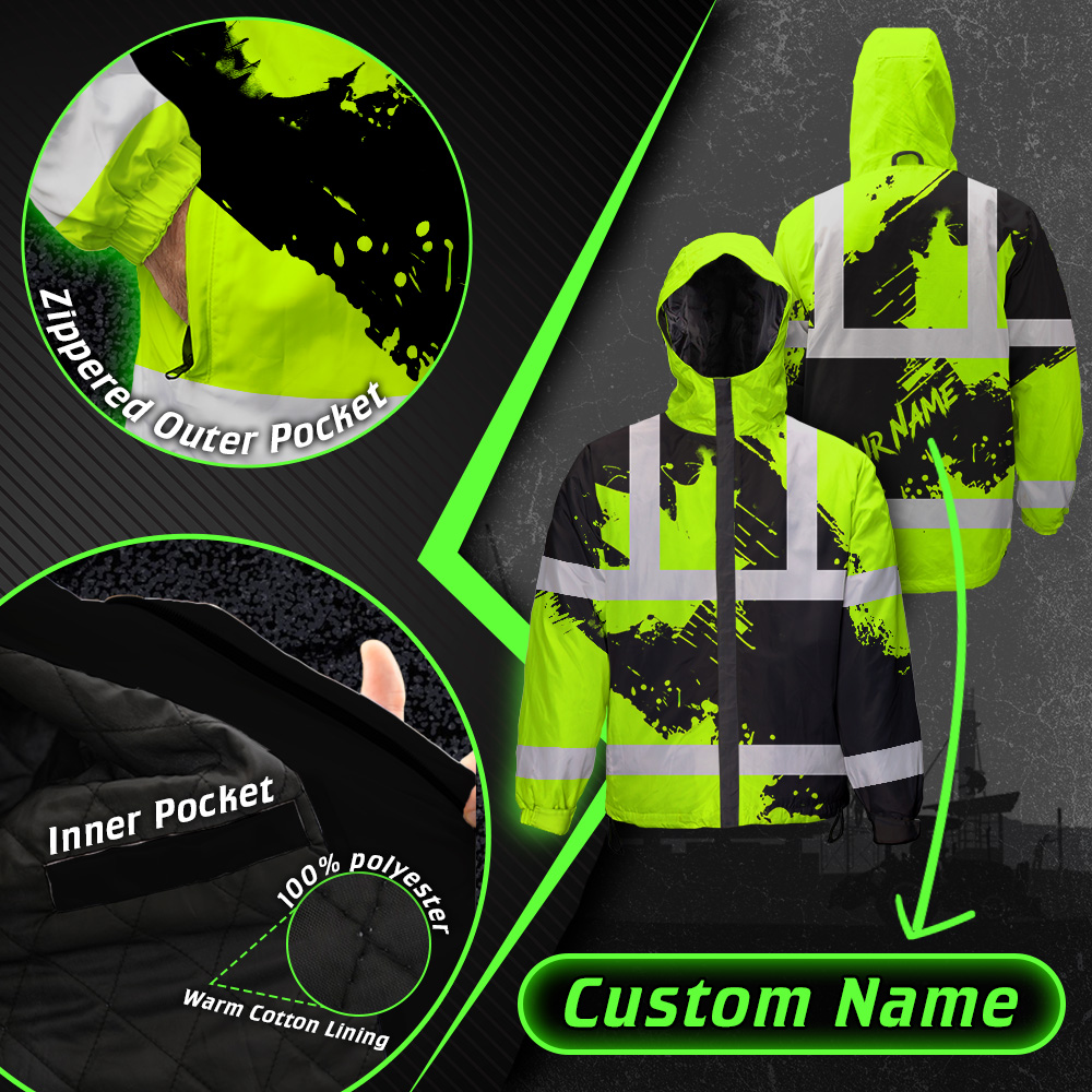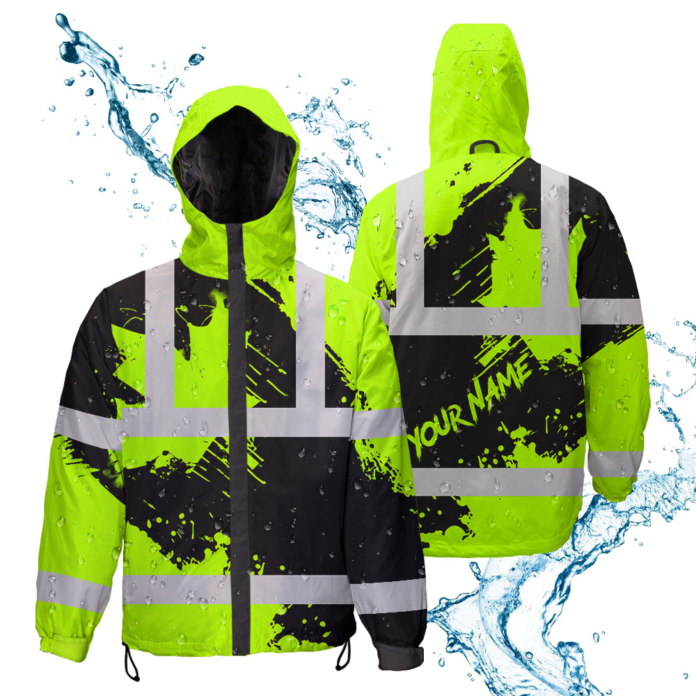 Hi Vis Jacket Waterproof Paint Flakes Canada Flag Custom Name