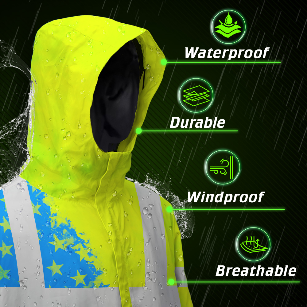 - Keeps you dry and visible in challenging environments