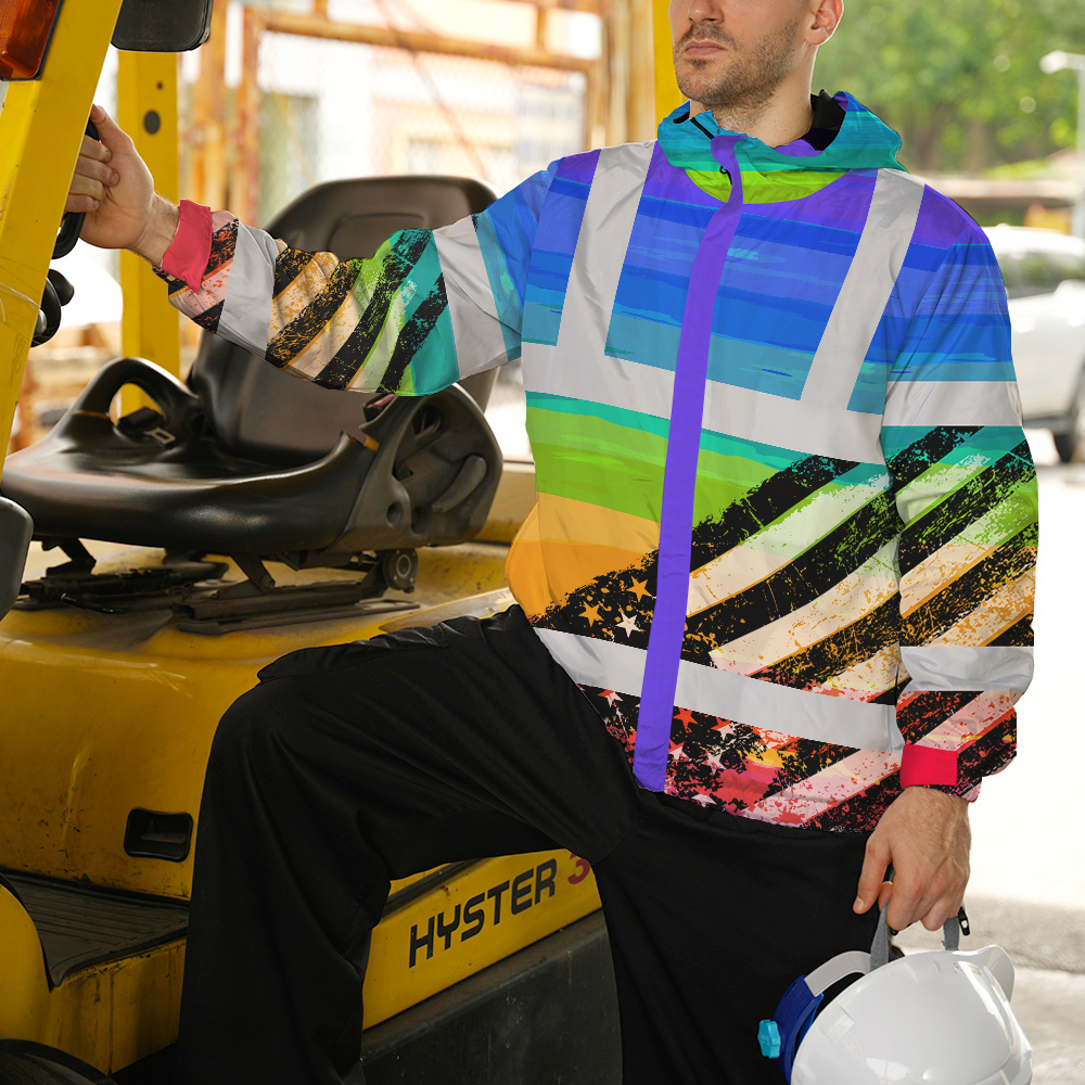 407ADIURJ047-Hi Vis Jacket Waterproof Reflective Rainbow US Flag Paint
