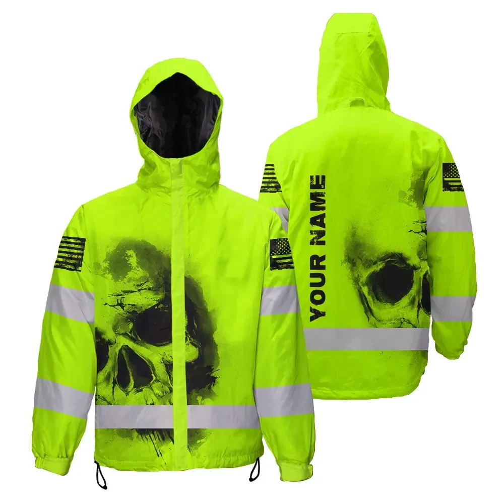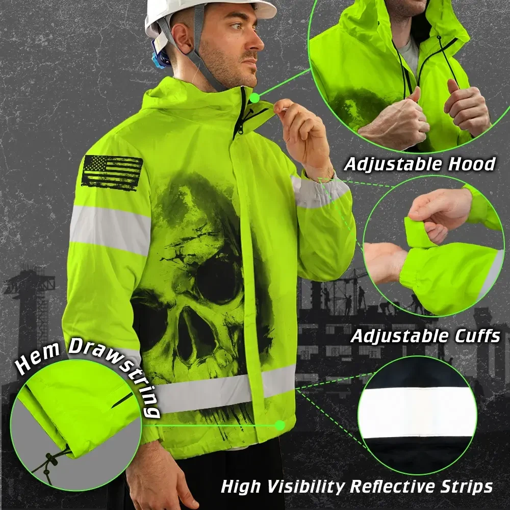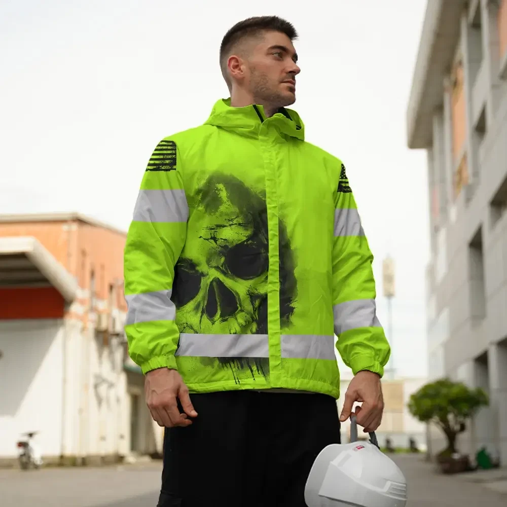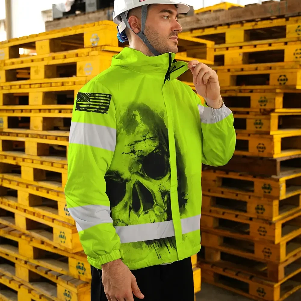 Hi Vis Jacket Waterproof Reflective Tapes Black Skull US Flag Safety Workwear For Skull Lover