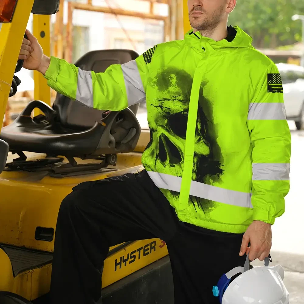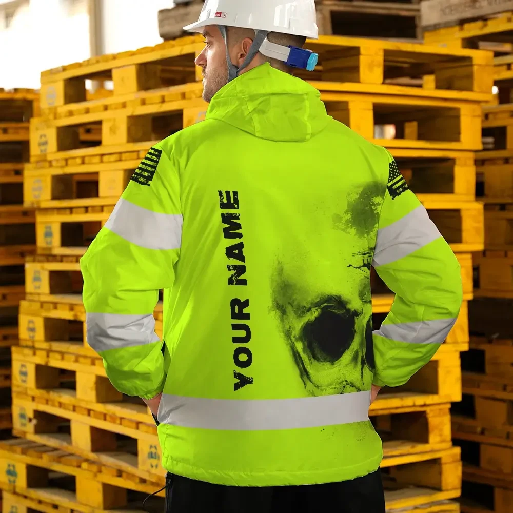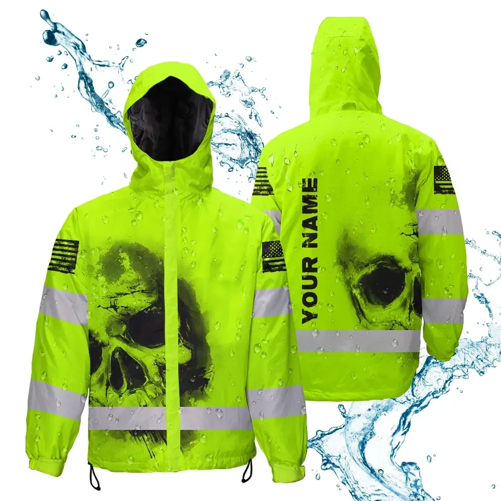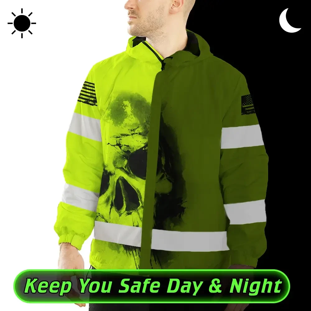 Hi Vis Jacket Waterproof Reflective Tapes Black Skull US Flag Safety Workwear For Skull Lover
