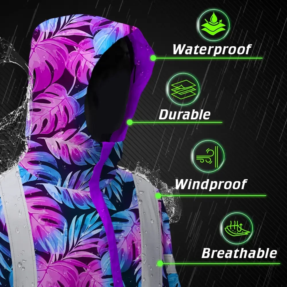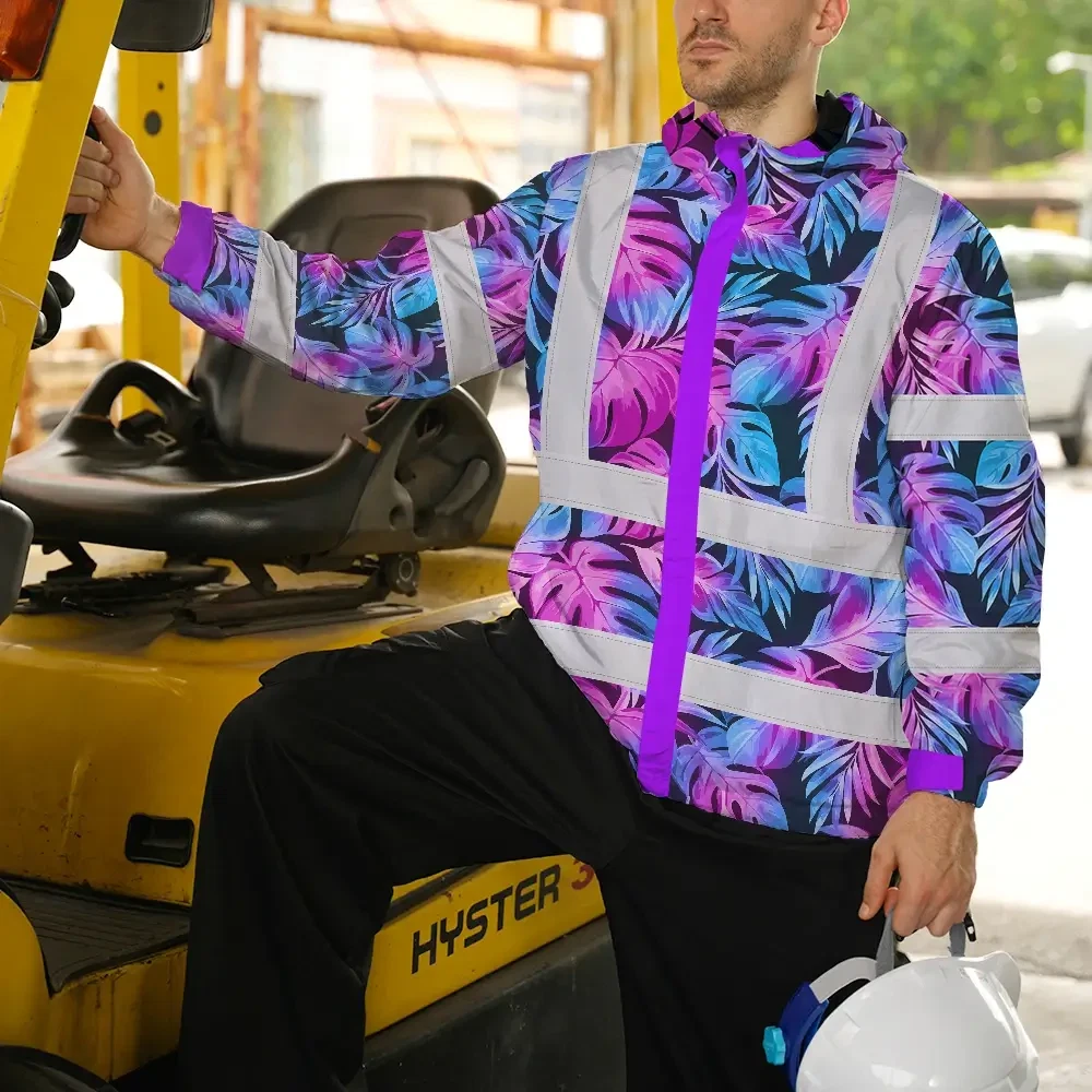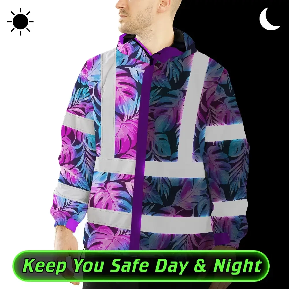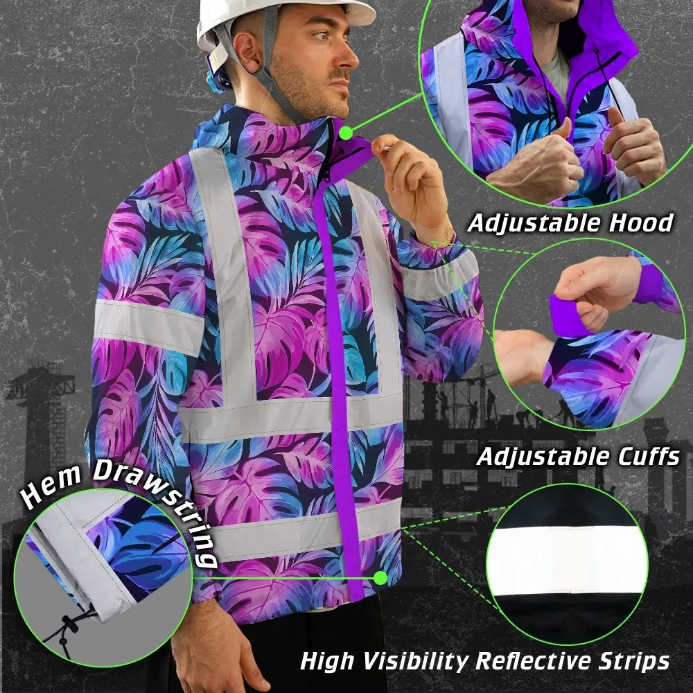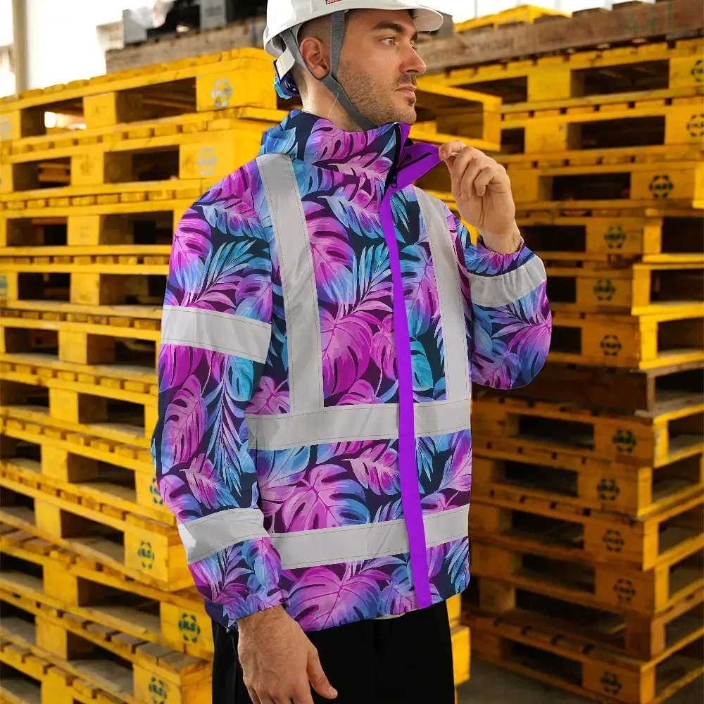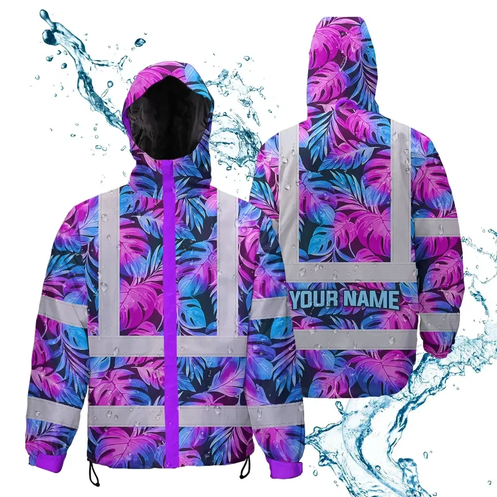 Hi Vis Jacket Waterproof Reflective Tapes Gradient Blue Violet Custom Name Safety Workwear For Workers, Truckers, Operators